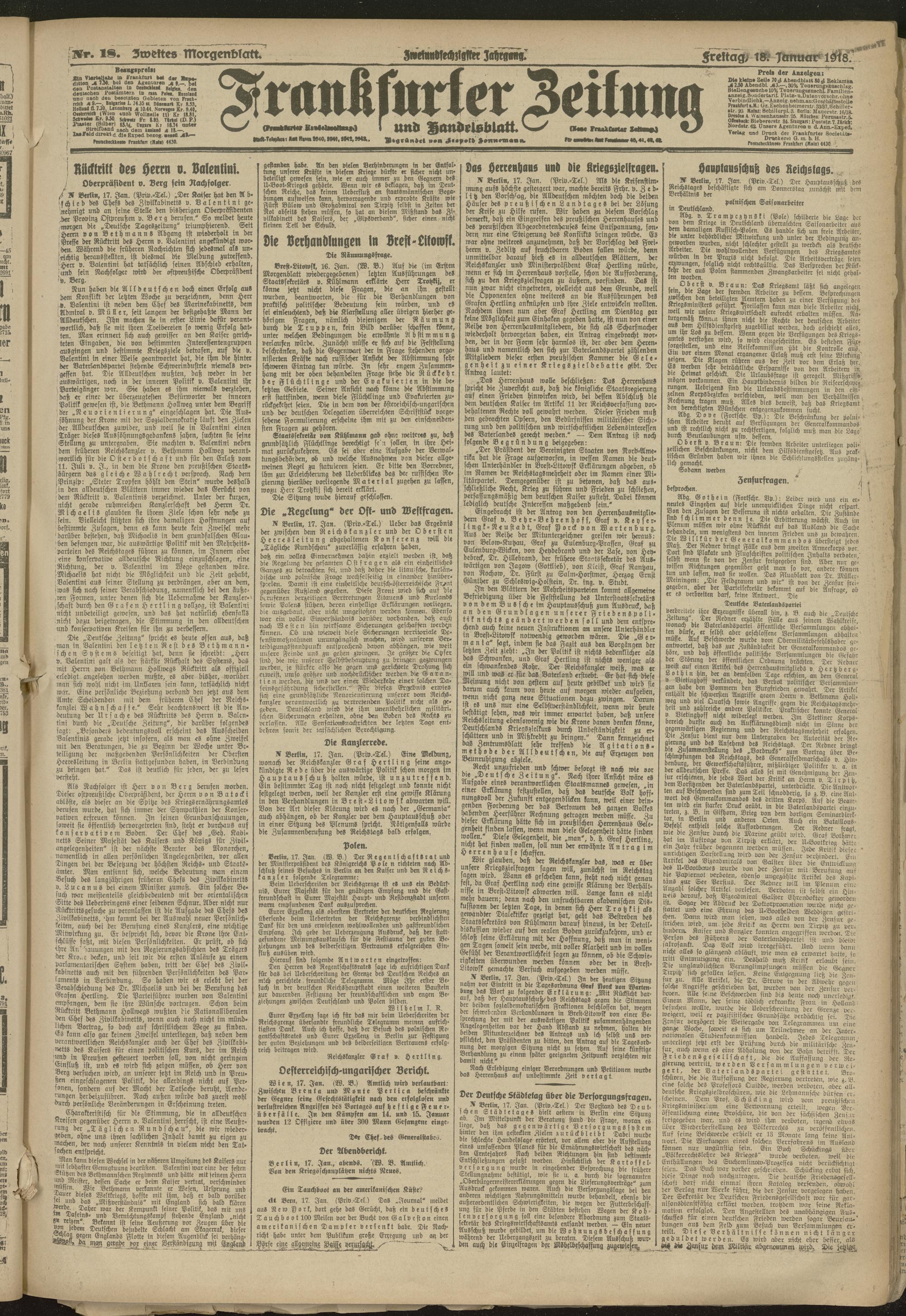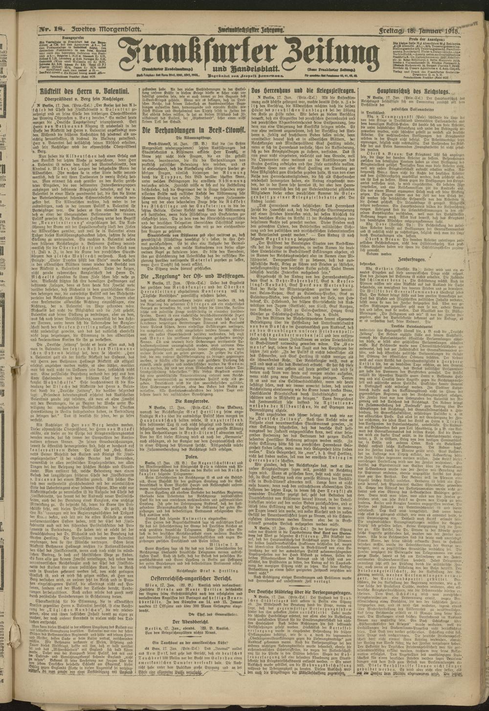 18.01.1918 = Nr. 18. Zweites Morgenblatt