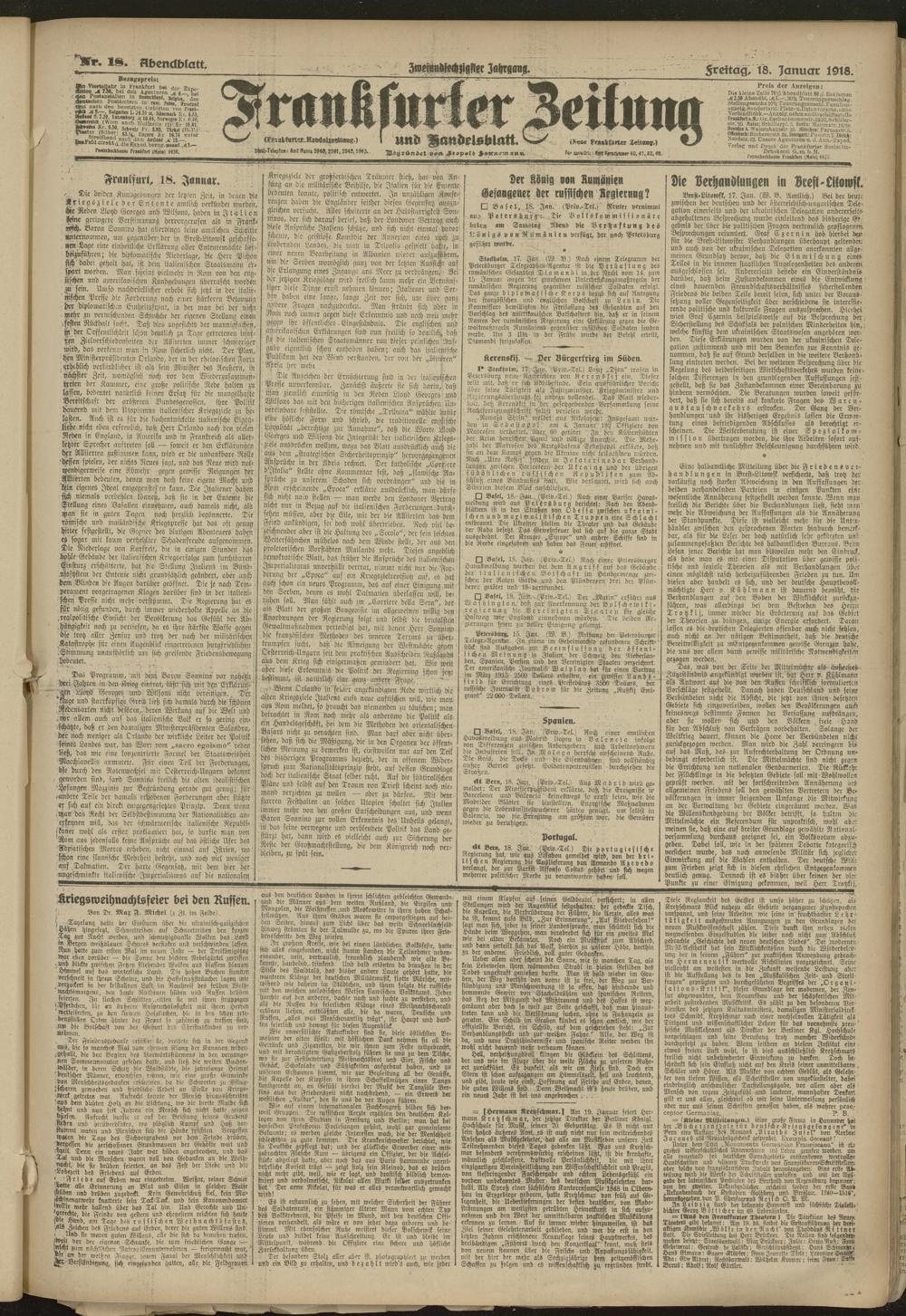 18.01.1918 = Nr. 18. Abendblatt
