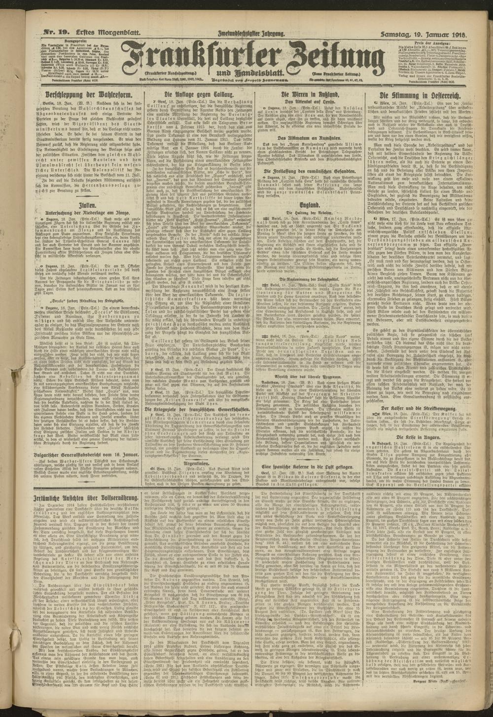 19.01.1918 = Nr. 19. Erstes Morgenblatt