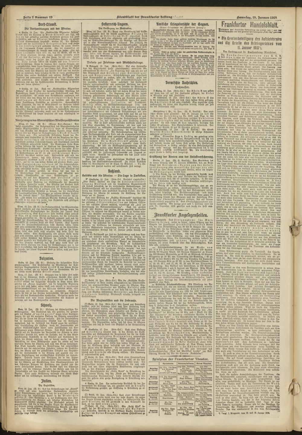 19.01.1918 = Nr. 19. Abendblatt