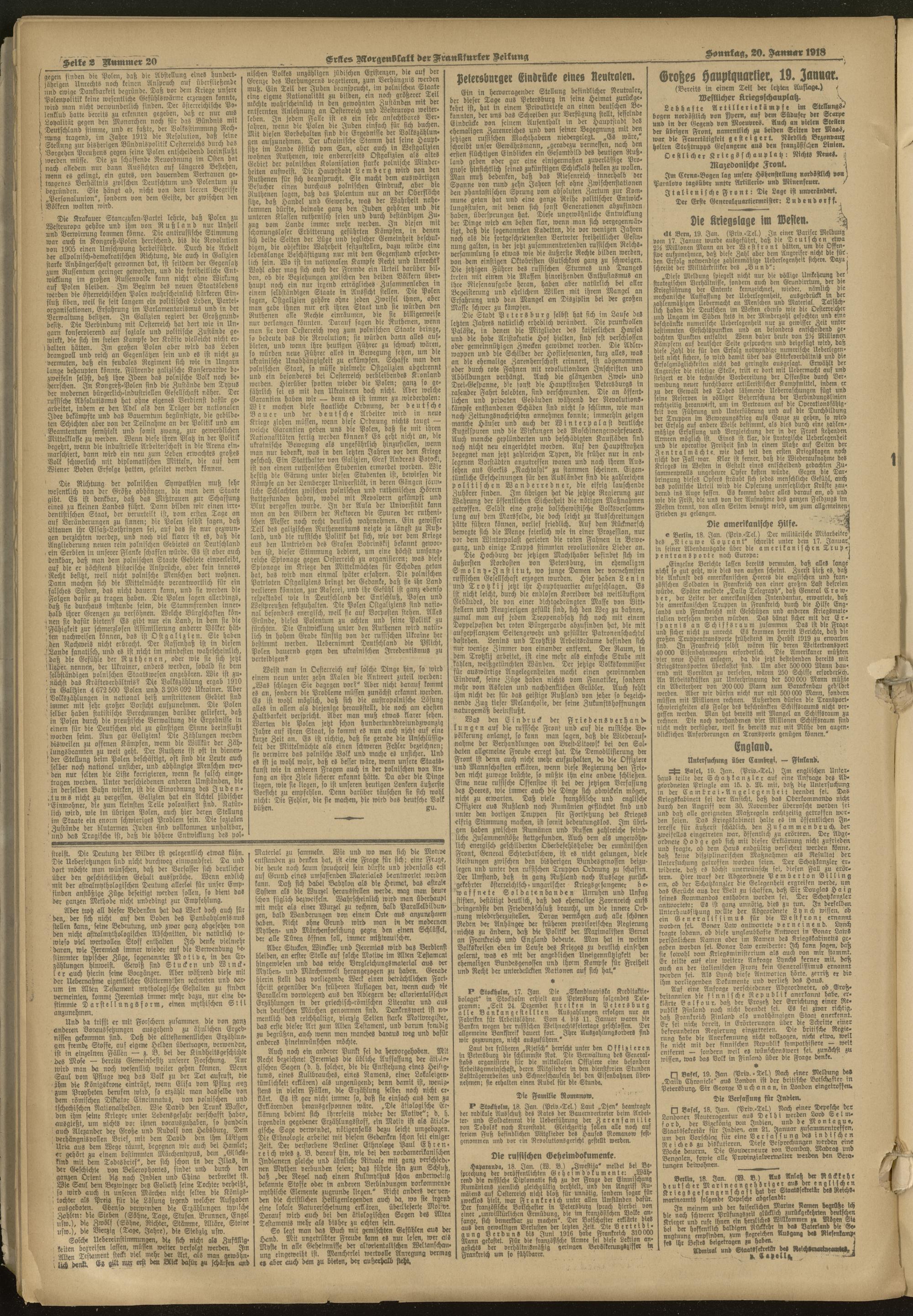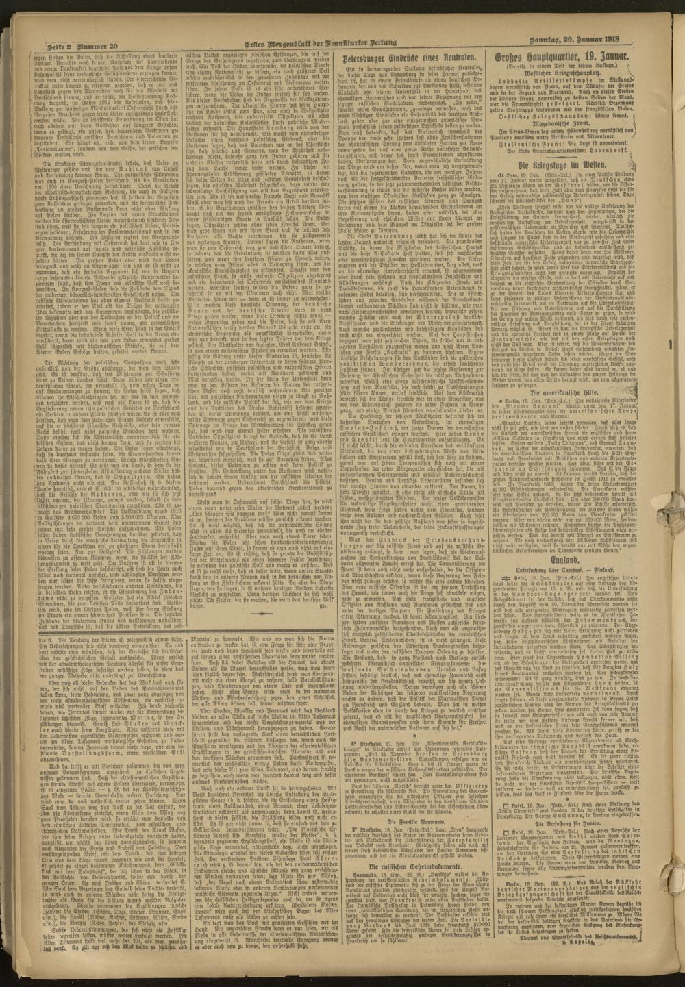 20.01.1918 = Nr. 20. Erstes Morgenblatt