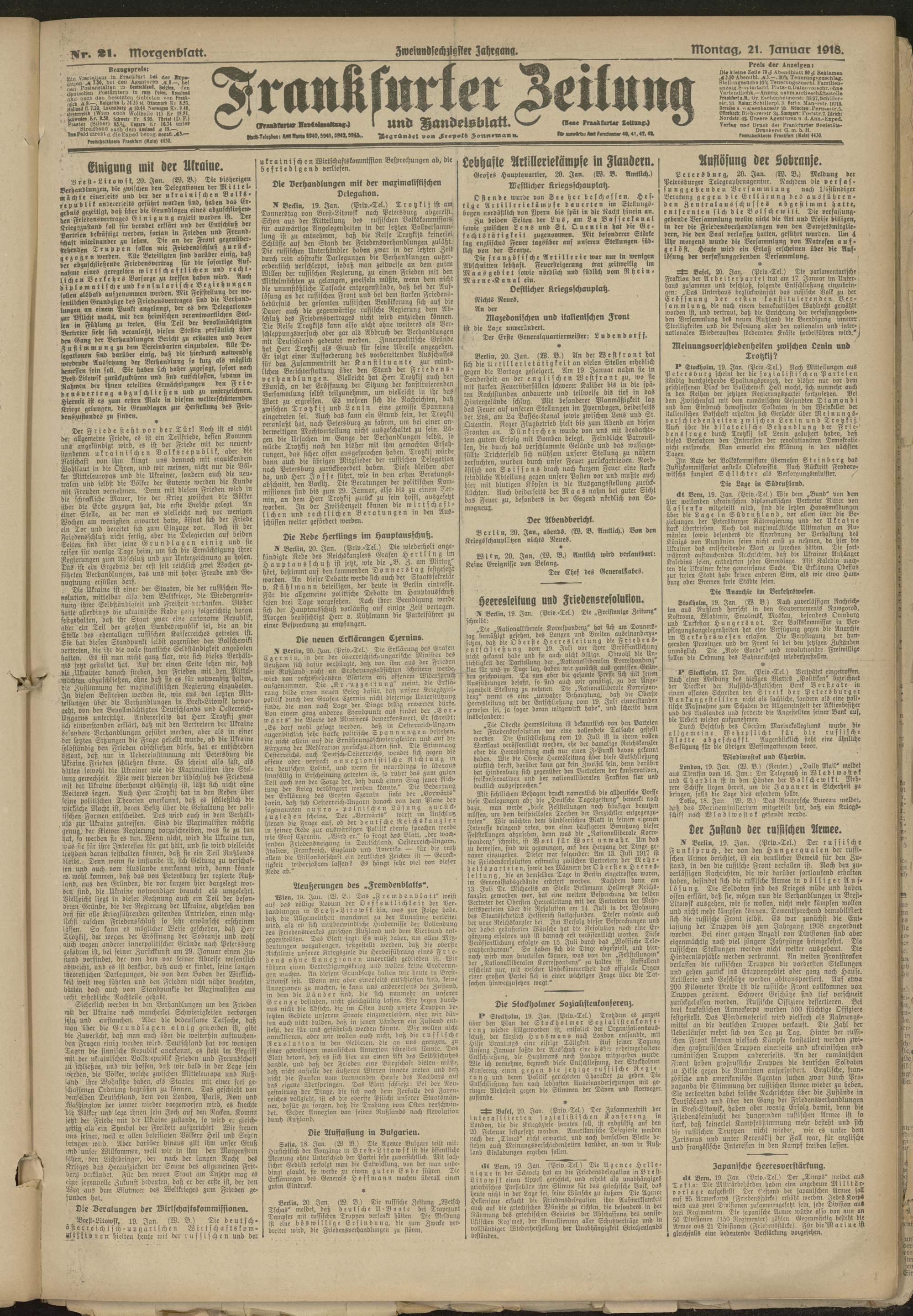 21.01.1918 = Nr. 21. Morgenblatt