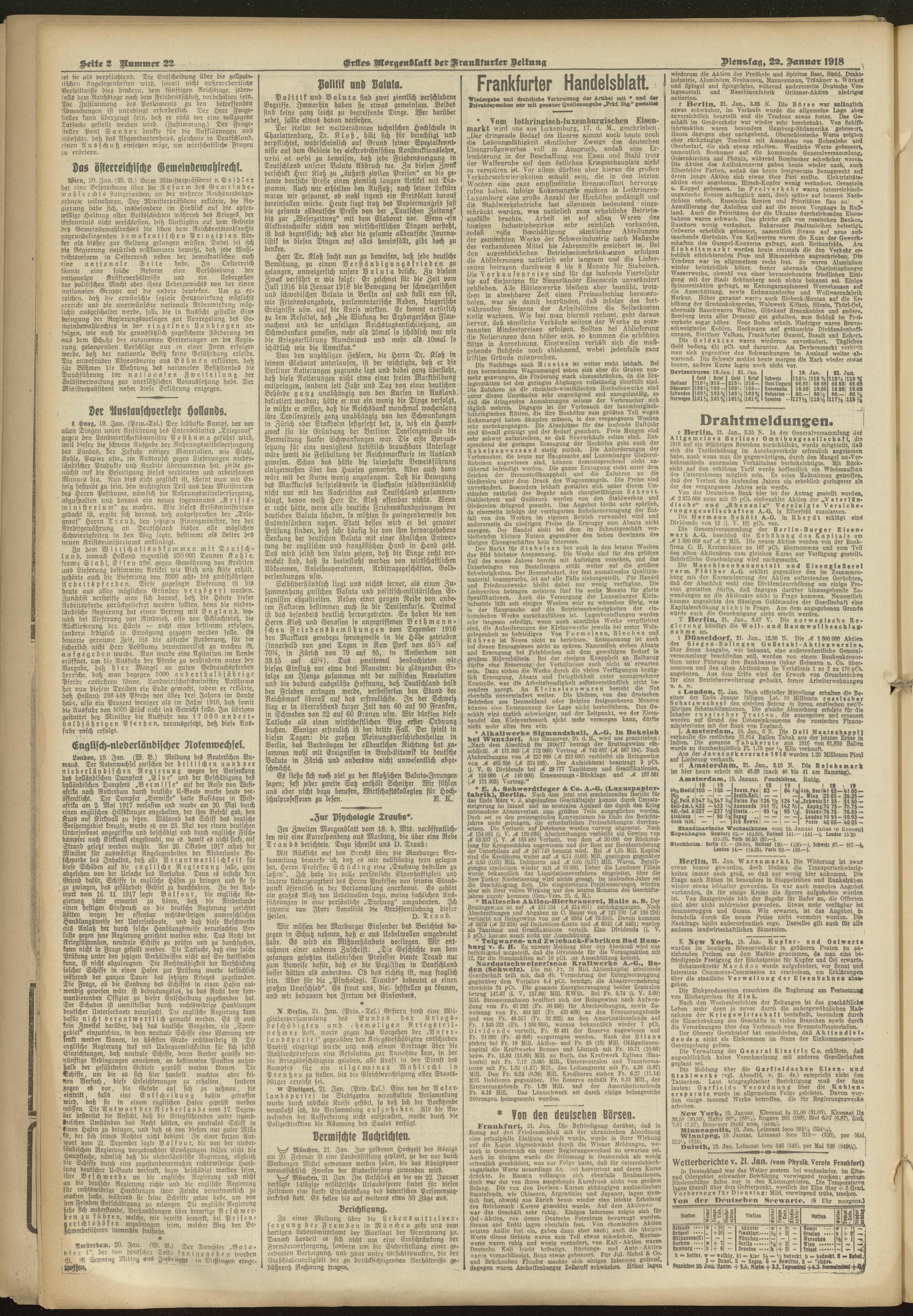 22.01.1918 = Nr. 22. Erstes Morgenblatt