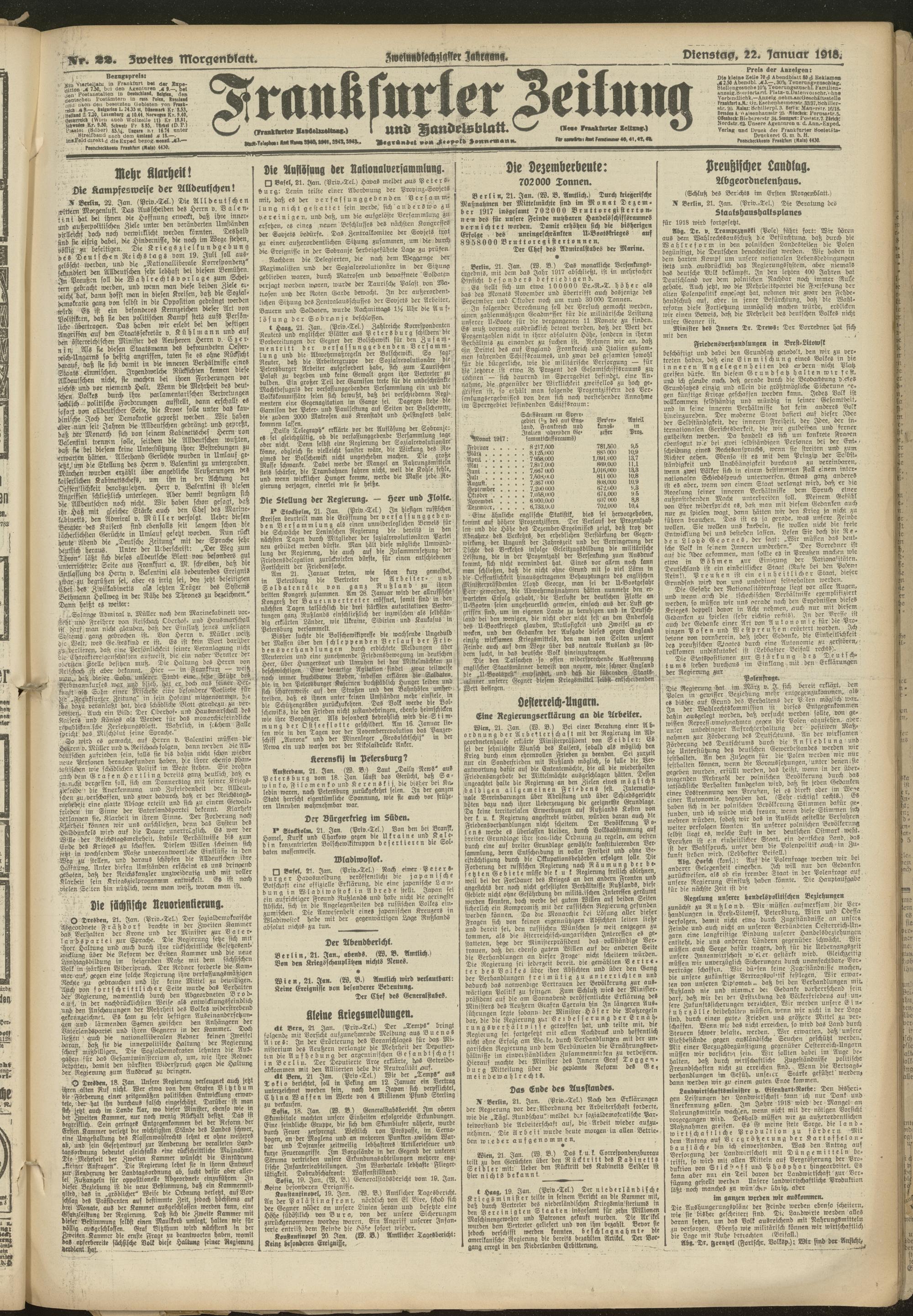 22.01.1918 = Nr. 22. Zweites Morgenblatt