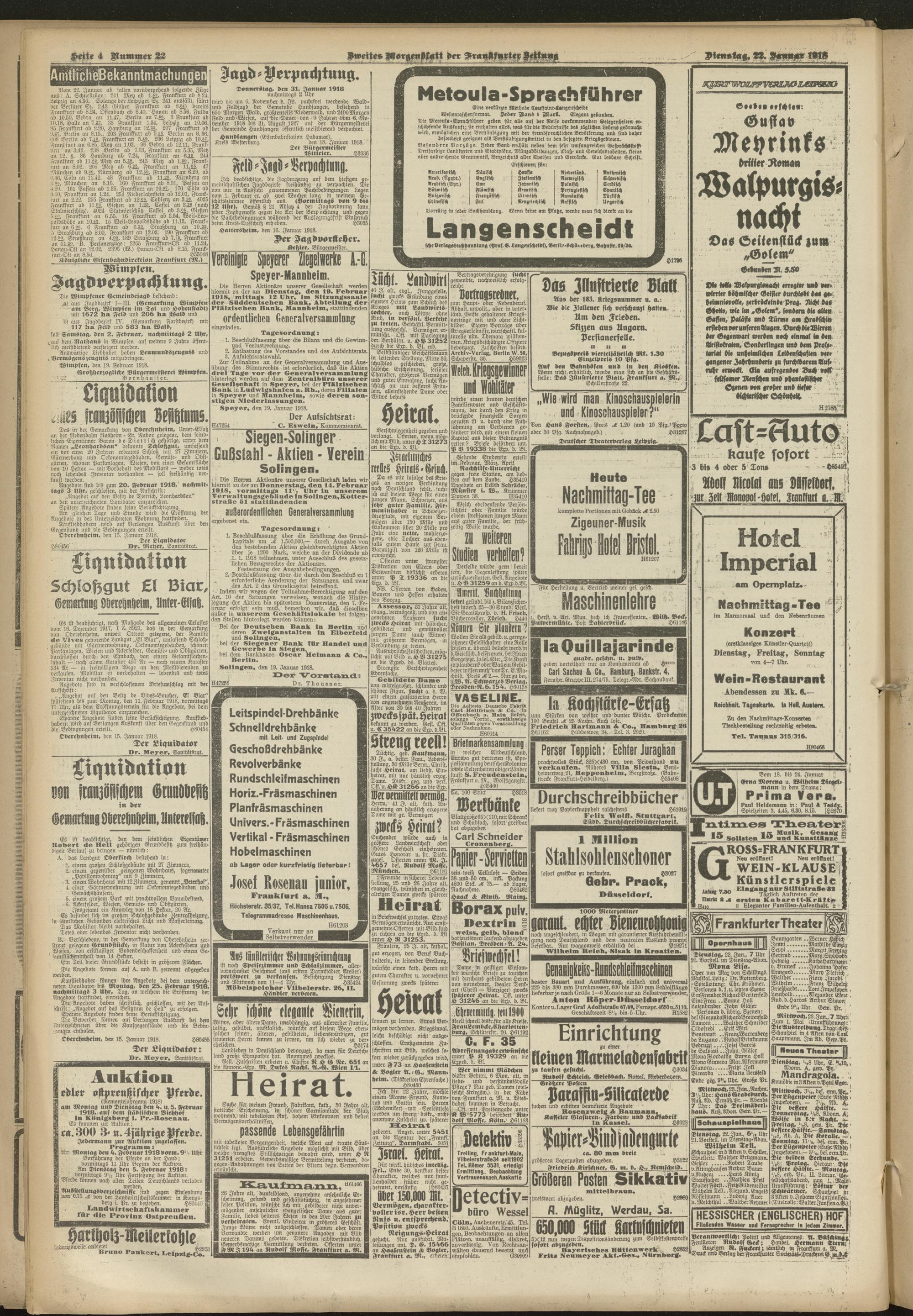 22.01.1918 = Nr. 22. Zweites Morgenblatt