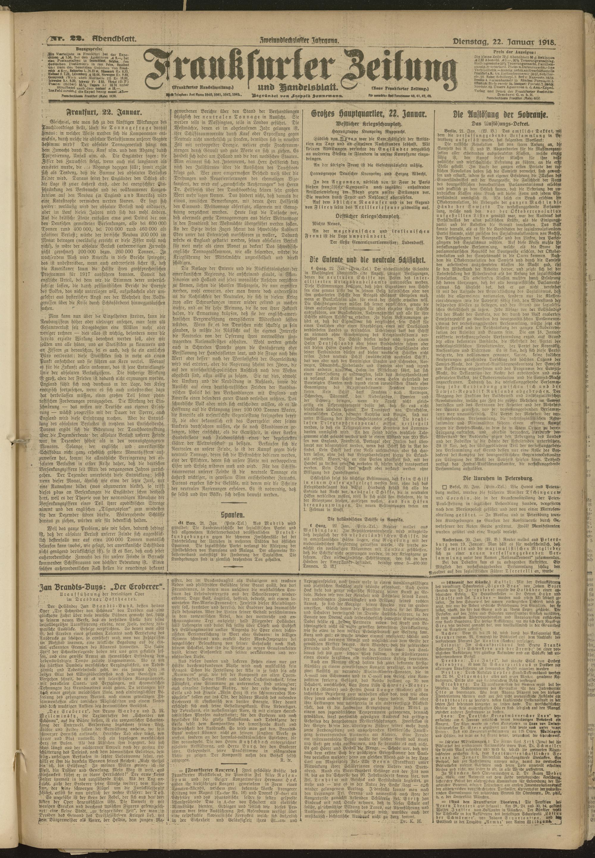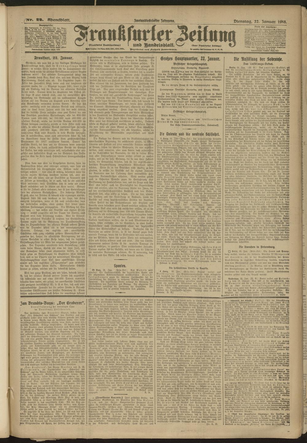 22.01.1918 = Nr. 22. Abendblatt