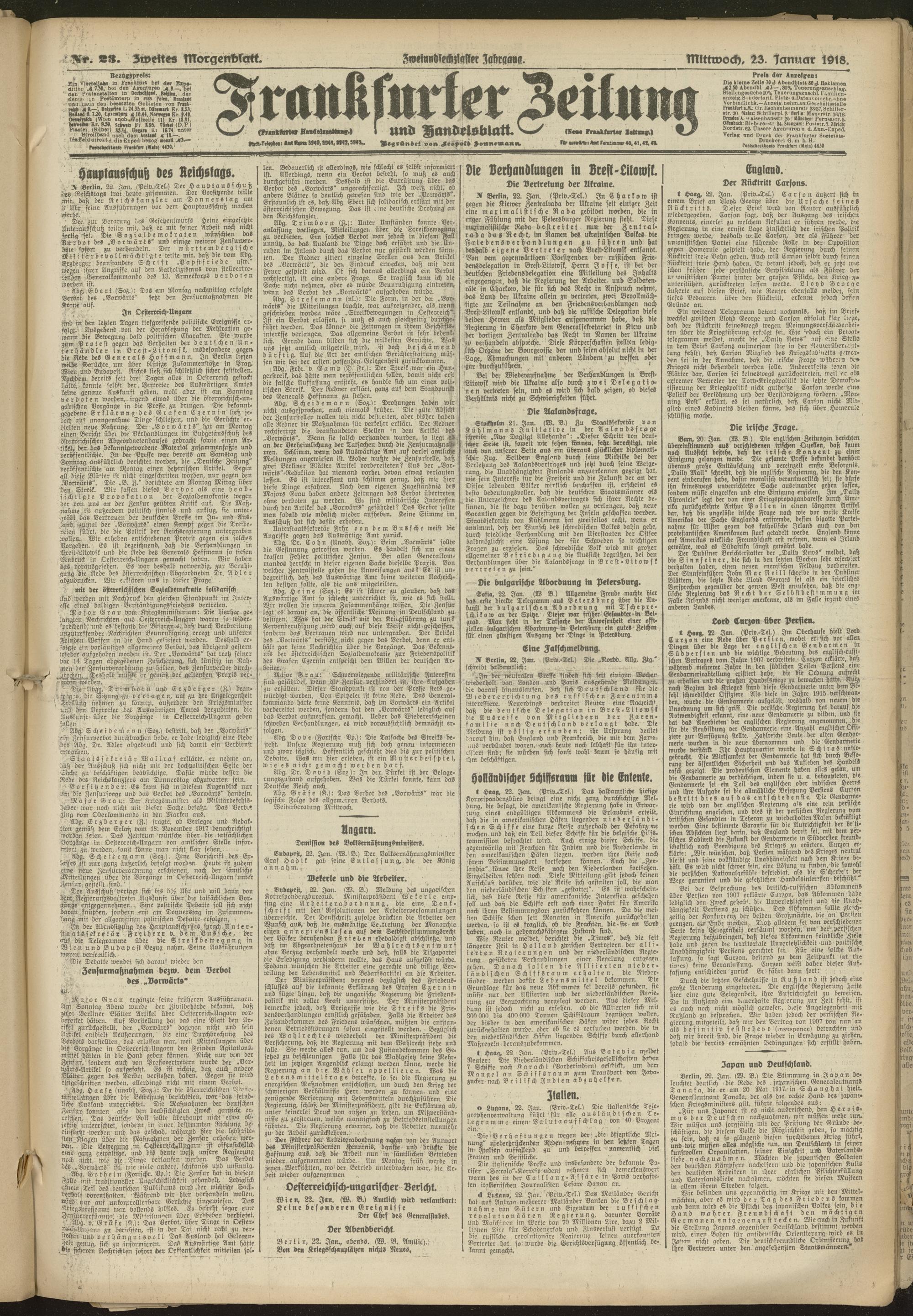 23.01.1918 = Nr. 23. Zweites Morgenblatt