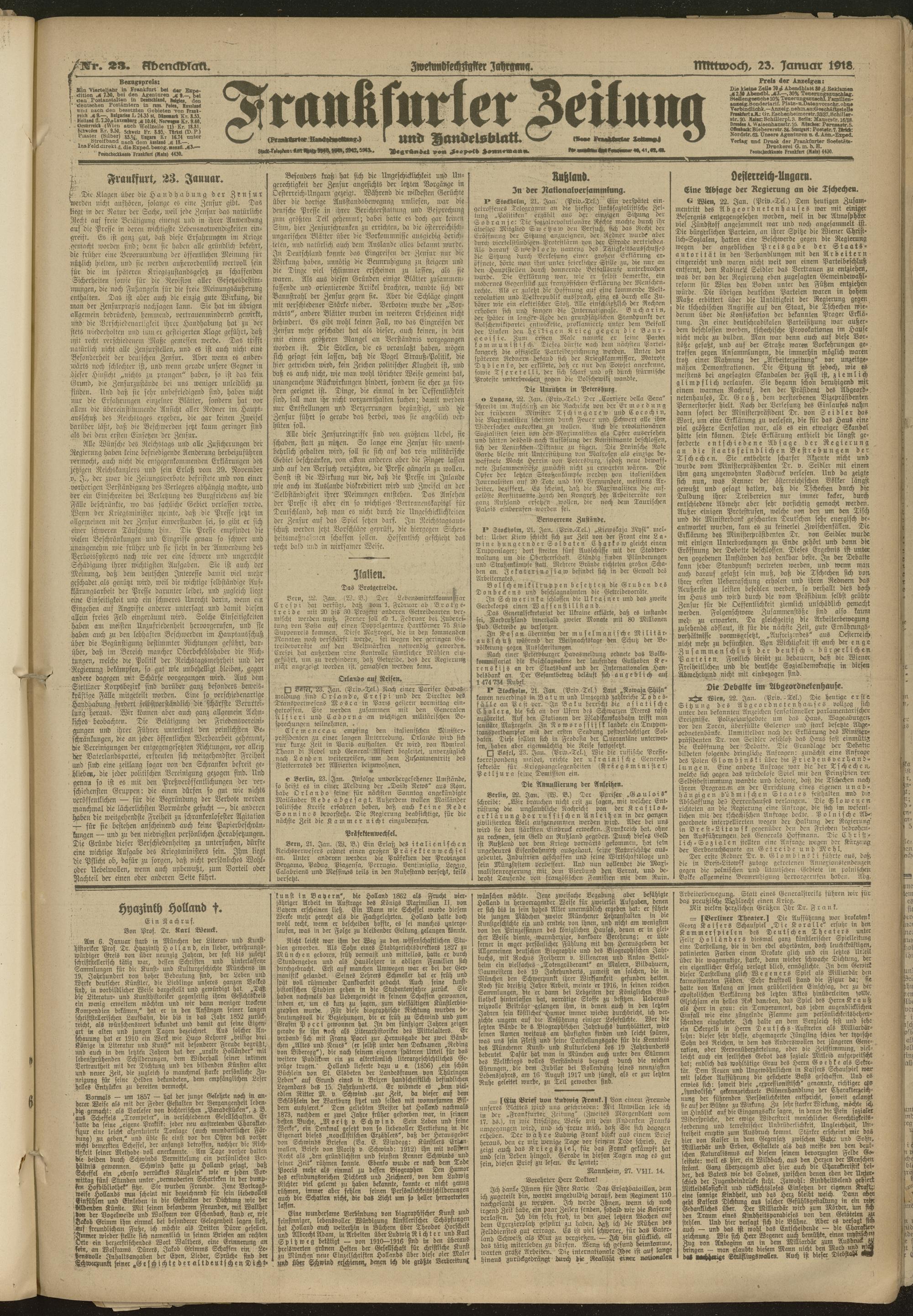 23.01.1918 = Nr. 23. Abendblatt