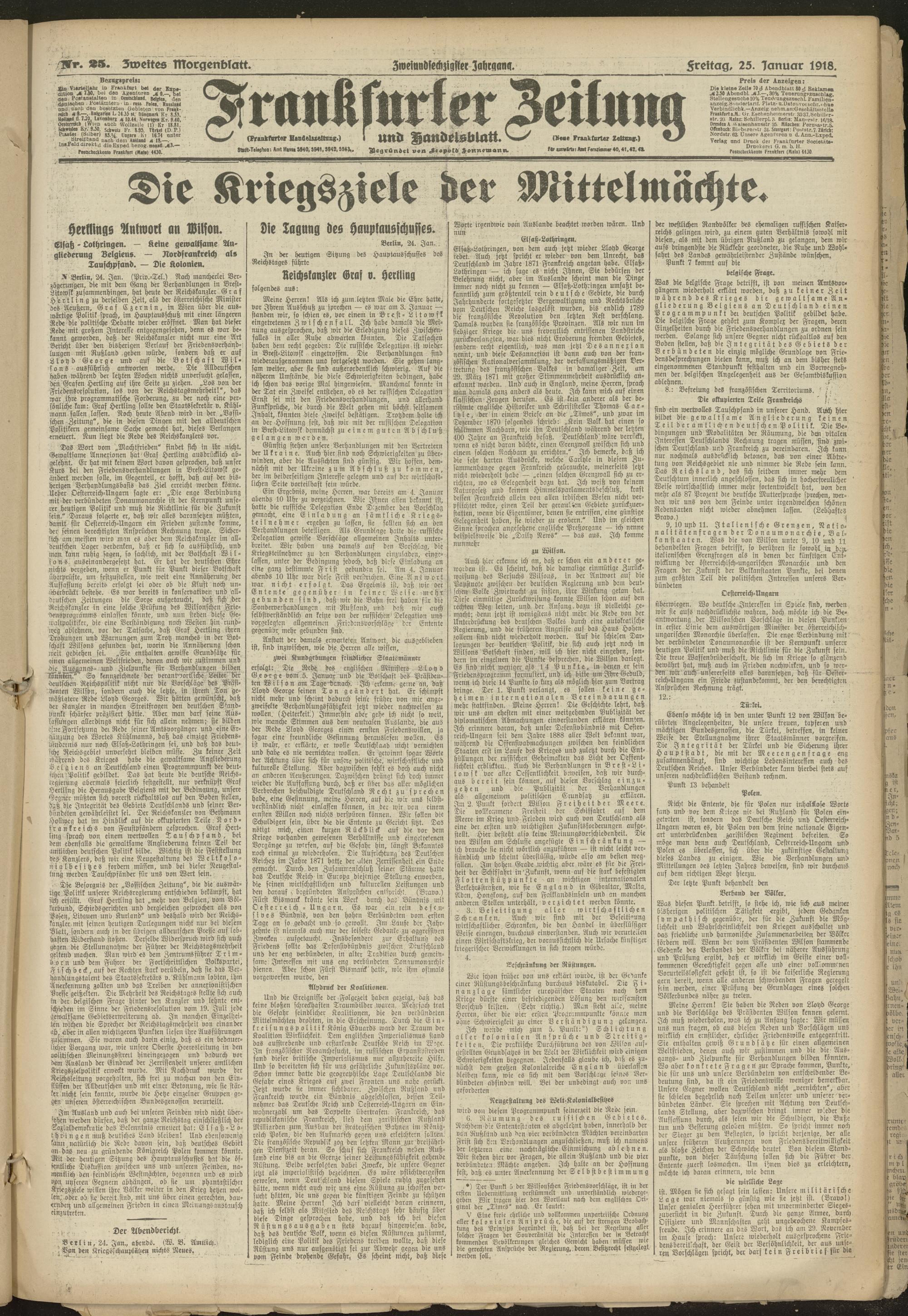 25.01.1918 = Nr. 25. Zweites Morgenblatt