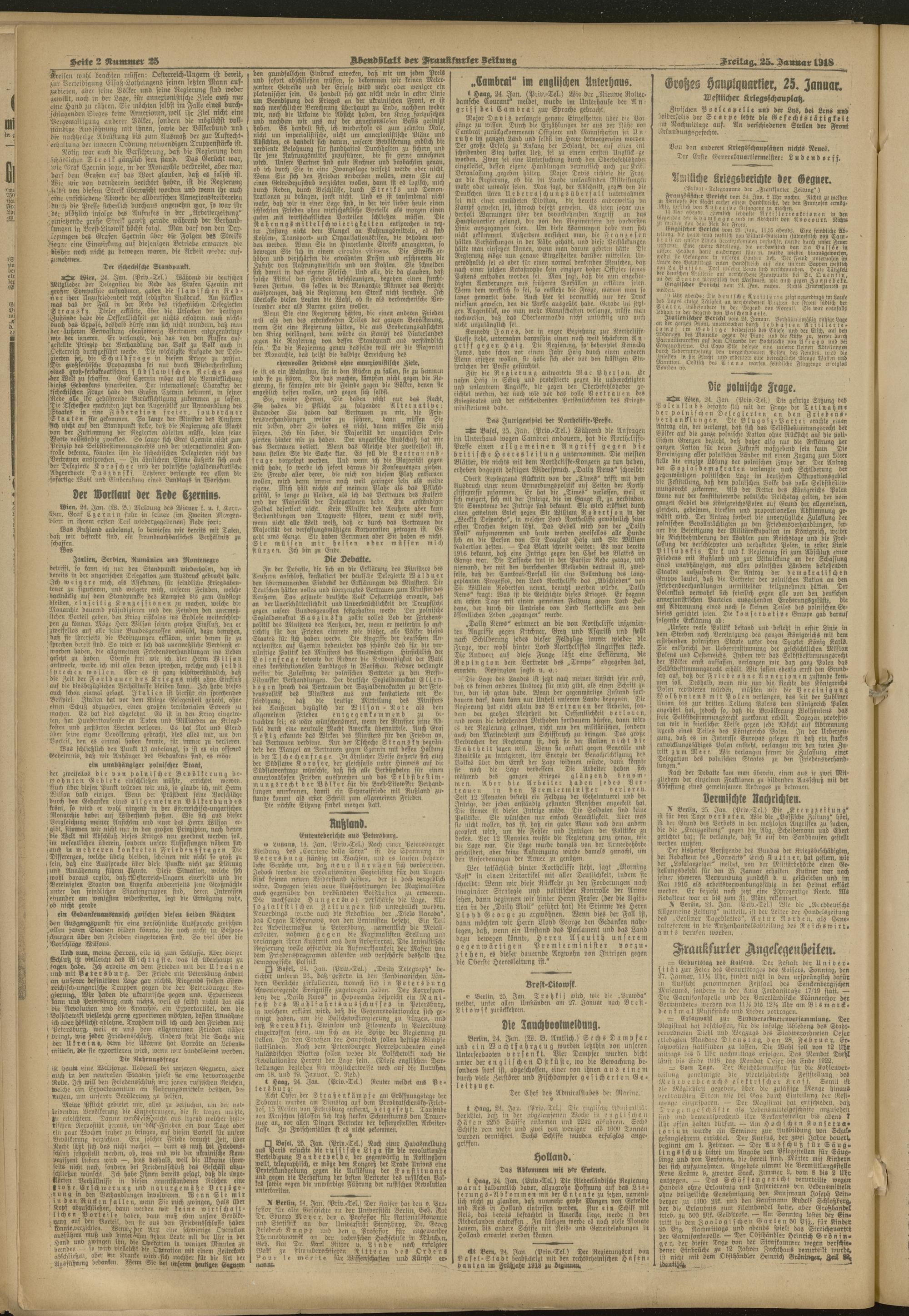 25.01.1918 = Nr. 25. Abendblatt