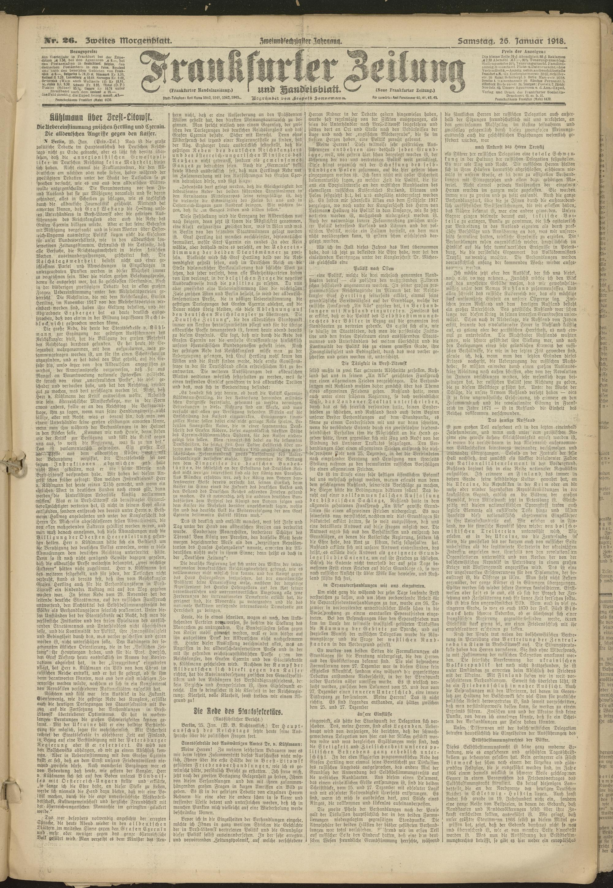 26.01.1918 = Nr. 26. Zweites Morgenblatt
