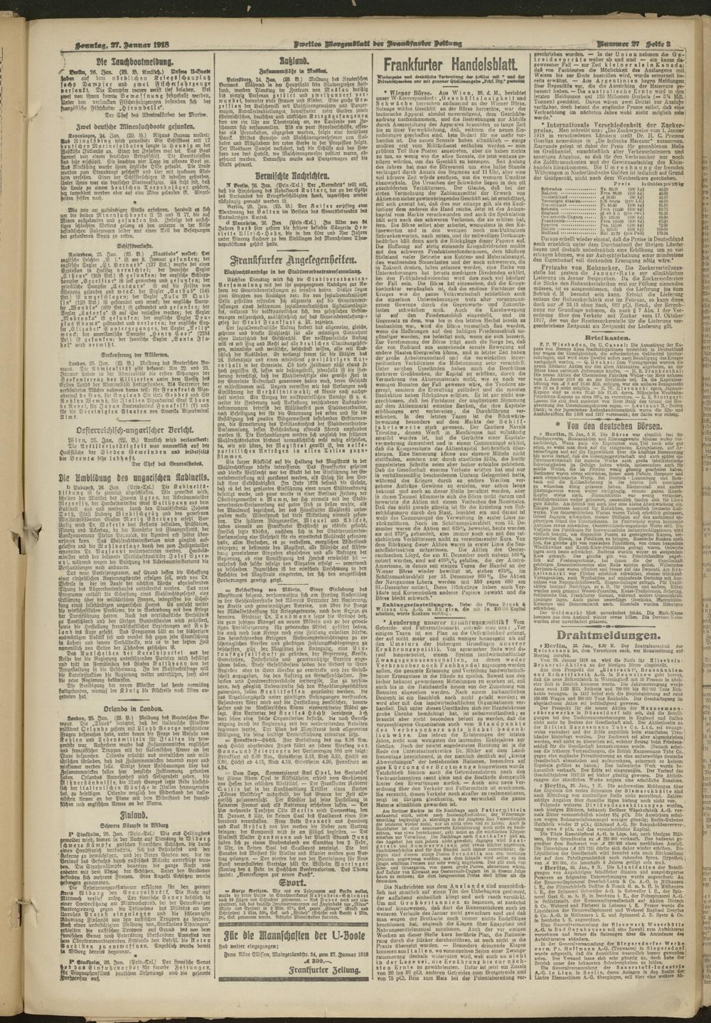 27.01.1918 = Nr. 27. Zweites Morgenblatt