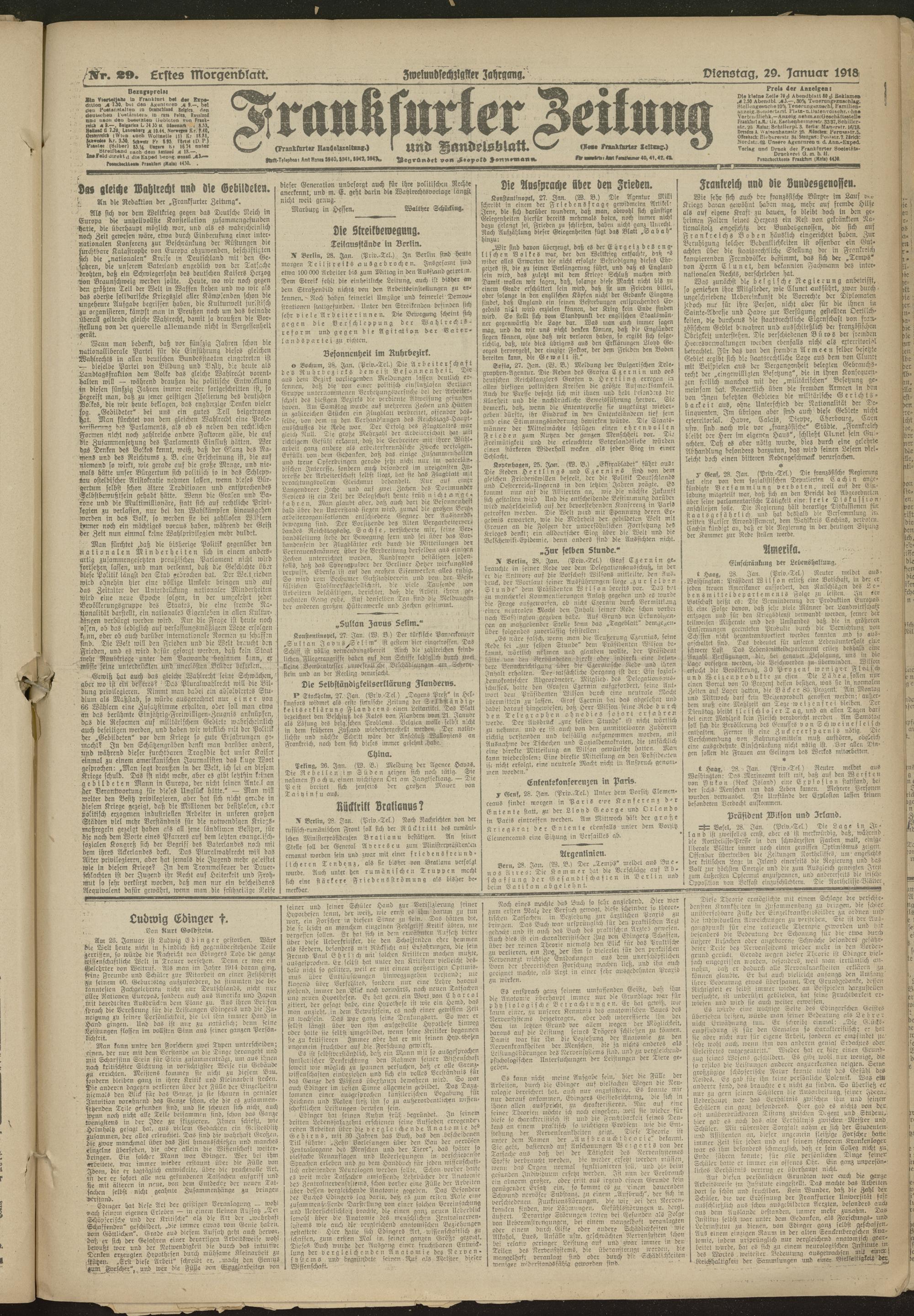 29.01.1918 = Nr. 29. Erstes Morgenblatt