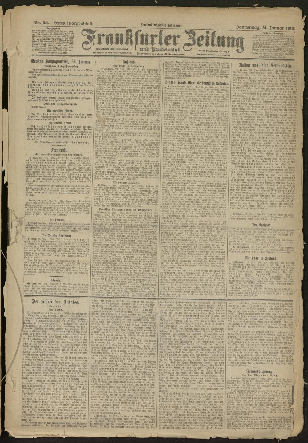 31.01.1918 = Nr. 31. Erstes Morgenblatt