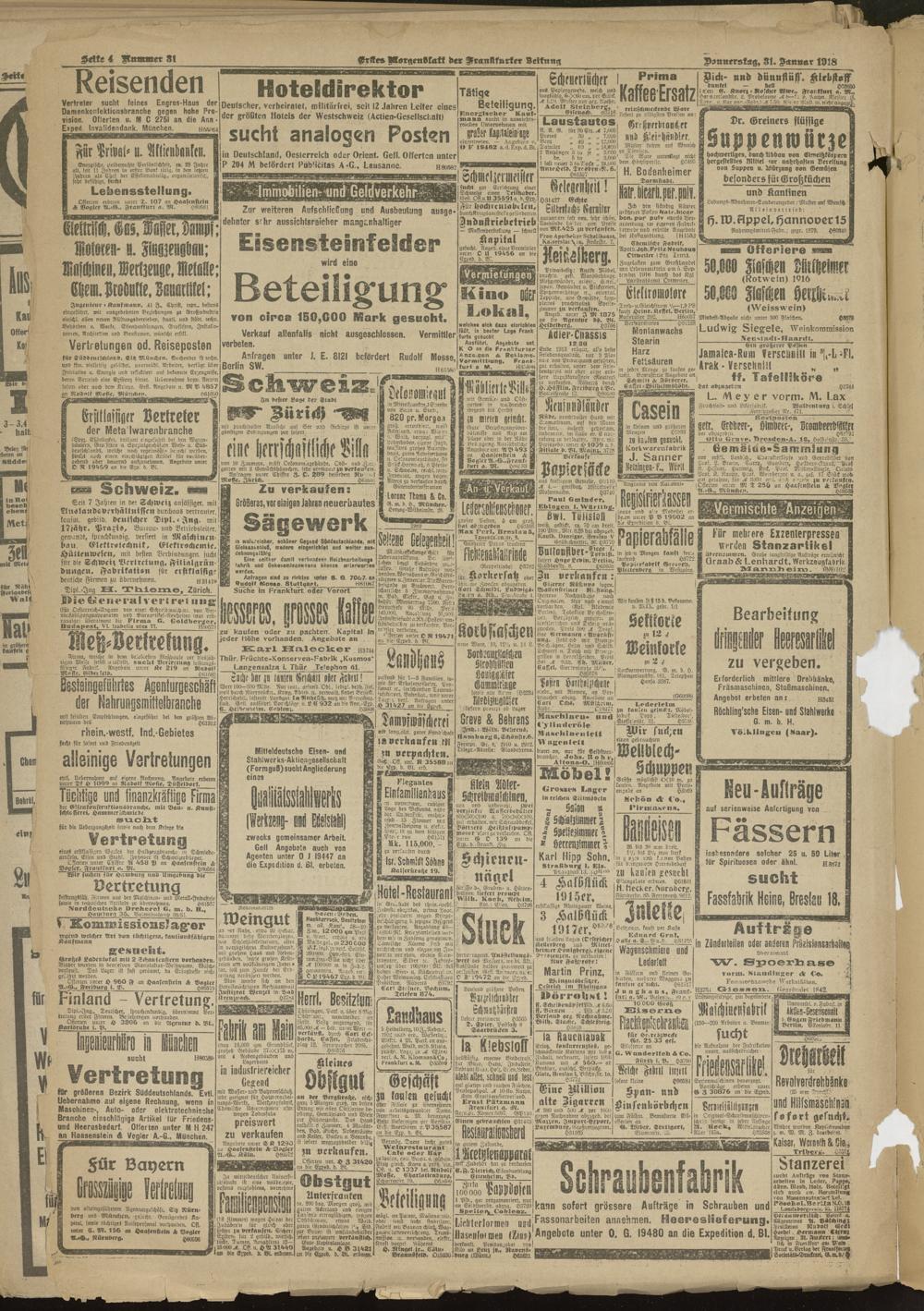 31.01.1918 = Nr. 31. Erstes Morgenblatt
