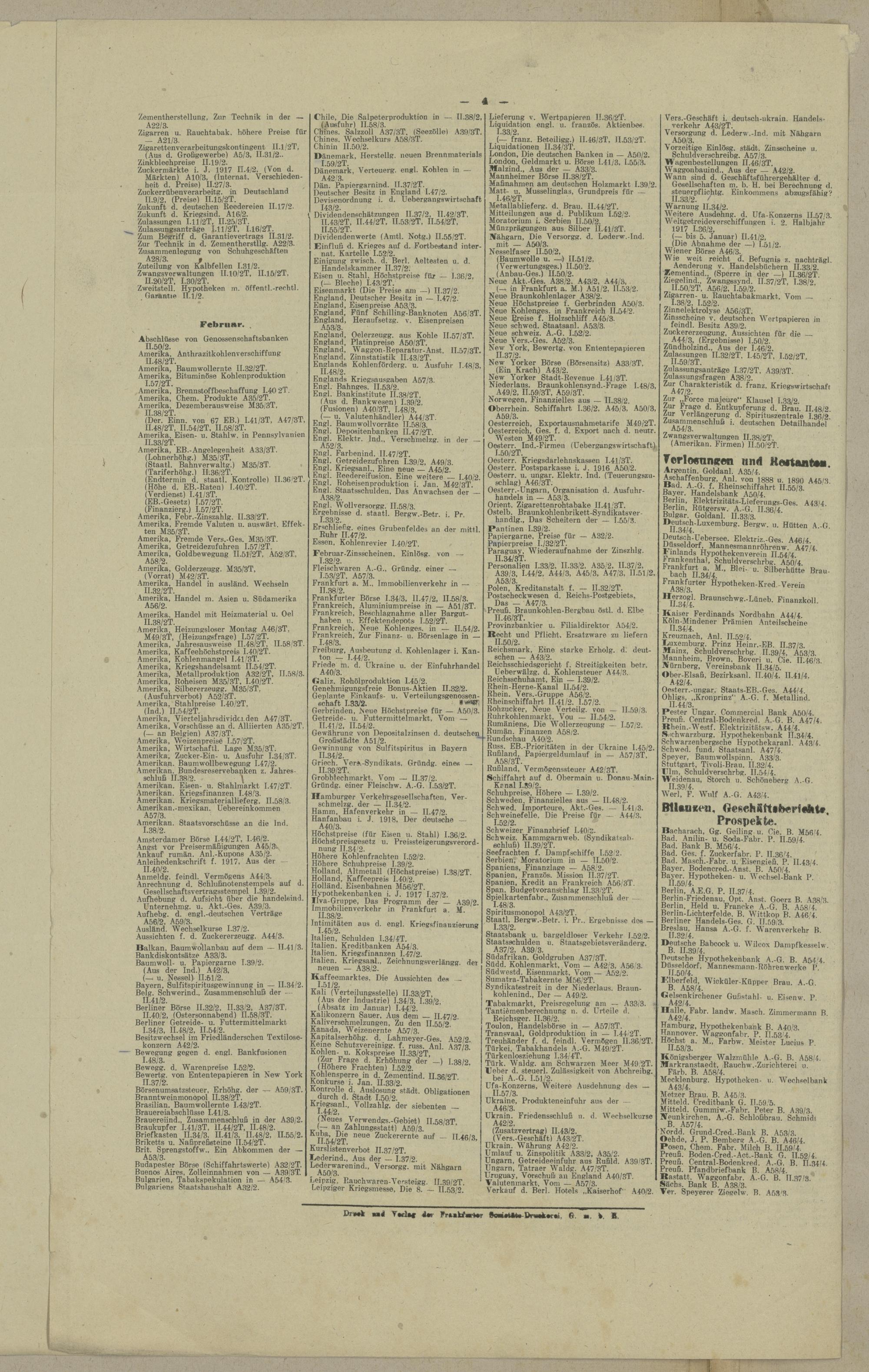 Inhaltsverzeichnis Februar 1918