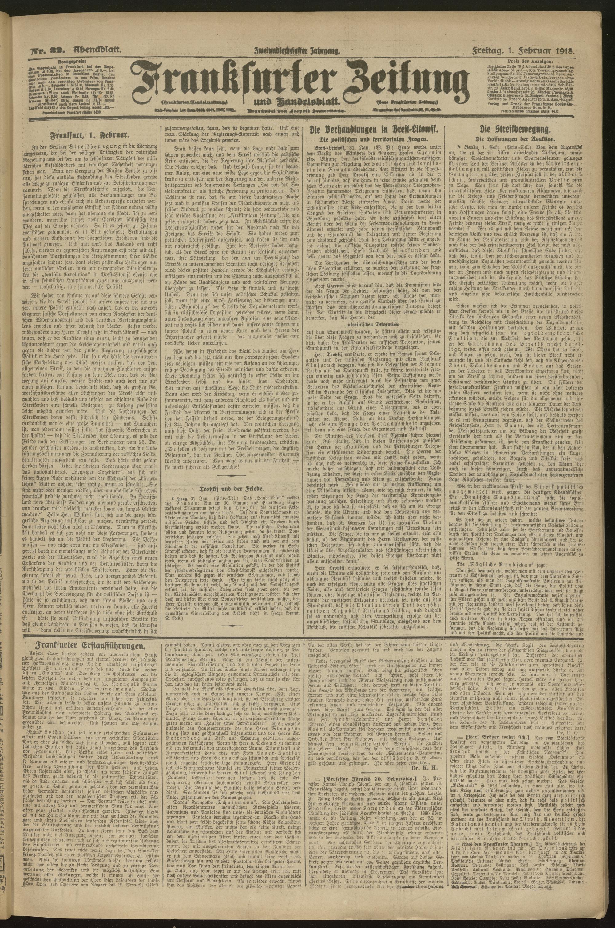 01.02.1918 = Nr. 32. Abendblatt