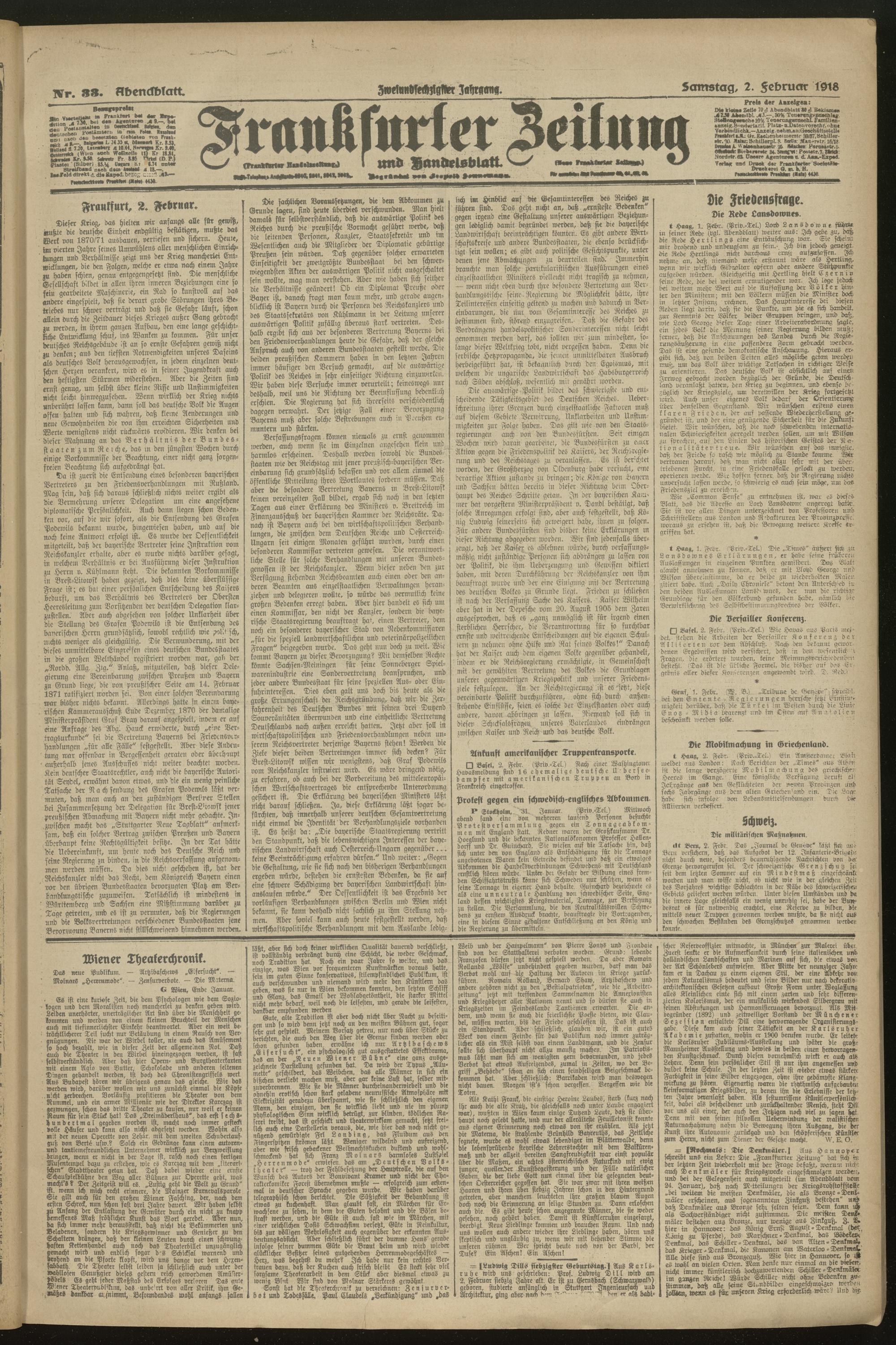 02.02.1918 = Nr. 33. Abendblatt