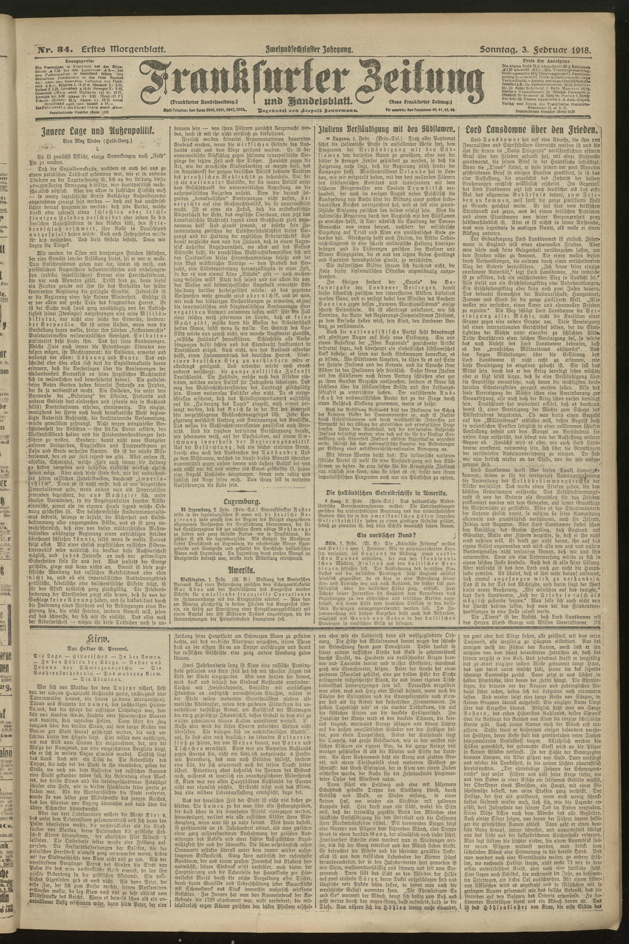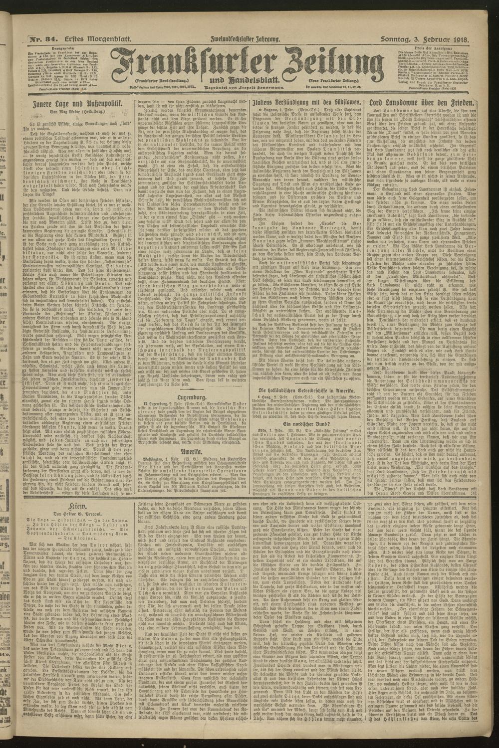 03.02.1918 = Nr. 34. Erstes Morgenblatt