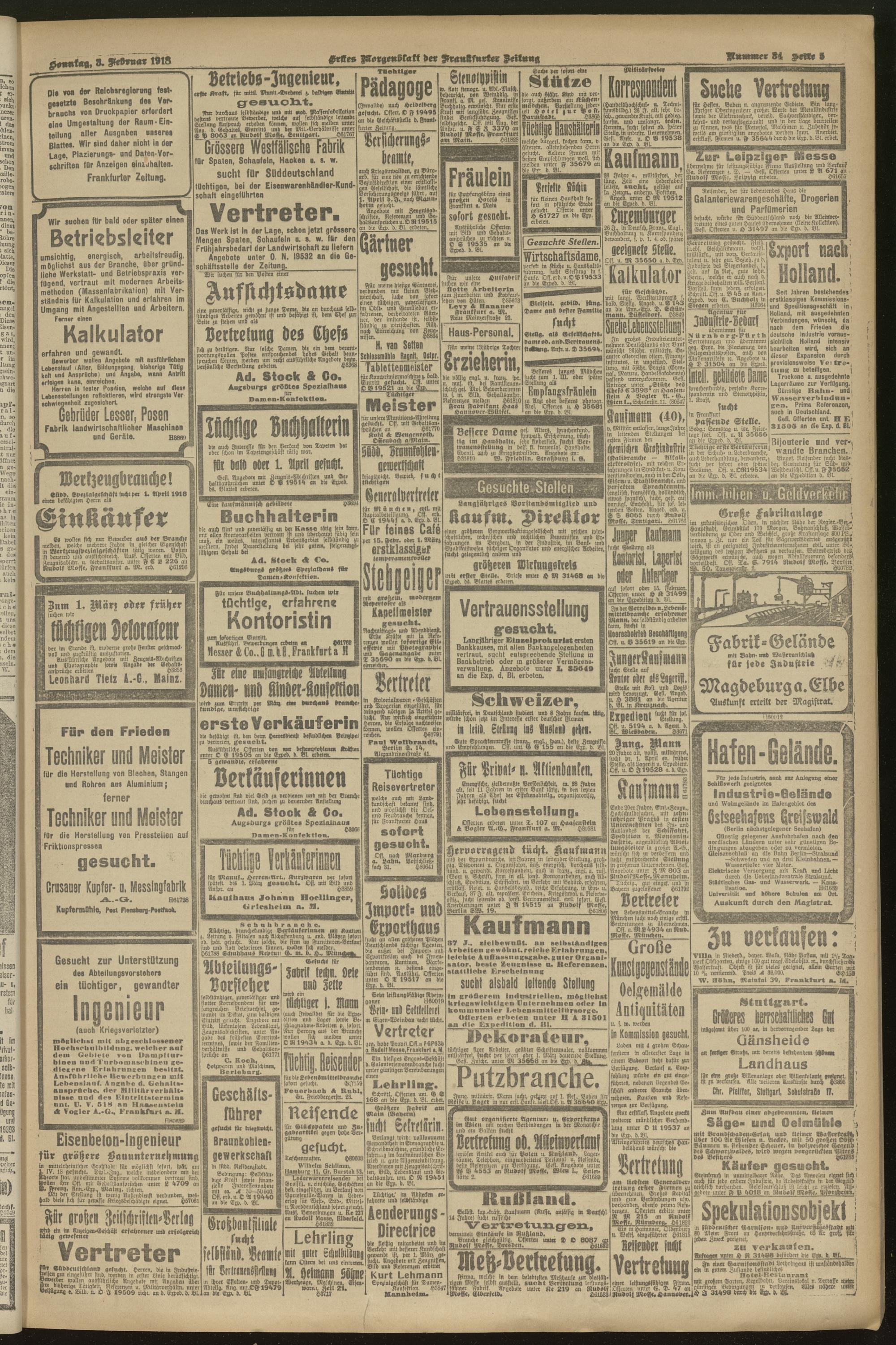 03.02.1918 = Nr. 34. Erstes Morgenblatt