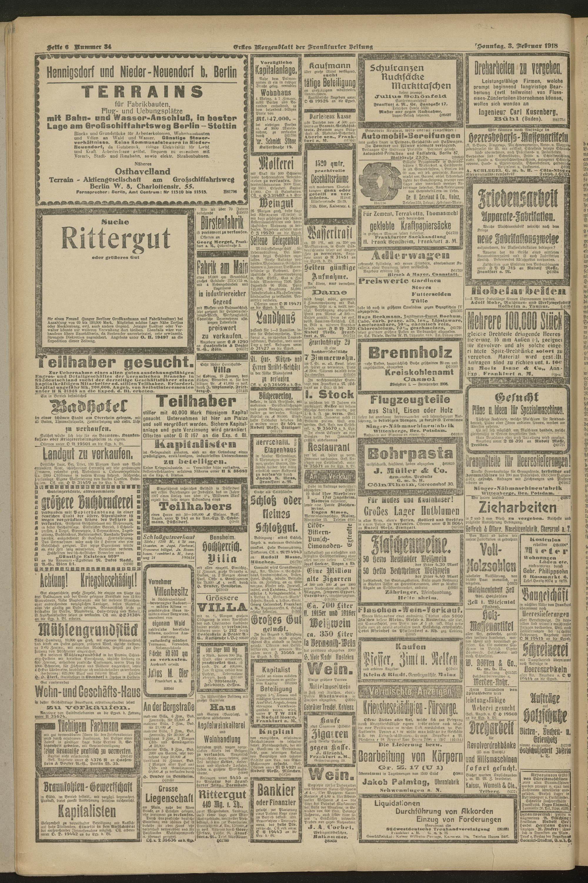 03.02.1918 = Nr. 34. Erstes Morgenblatt