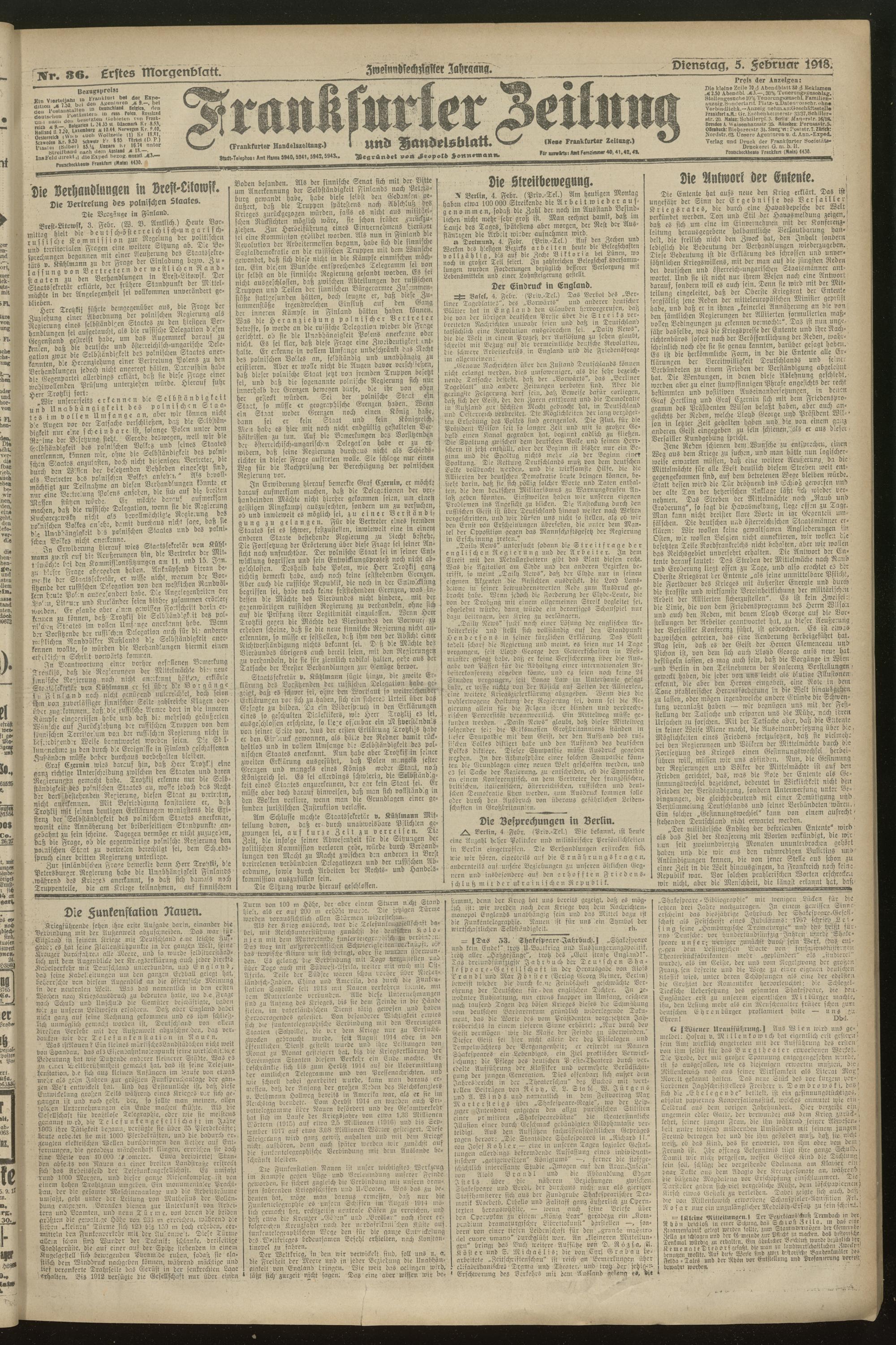 05.02.1918 = Nr. 36. Erstes Morgenblatt