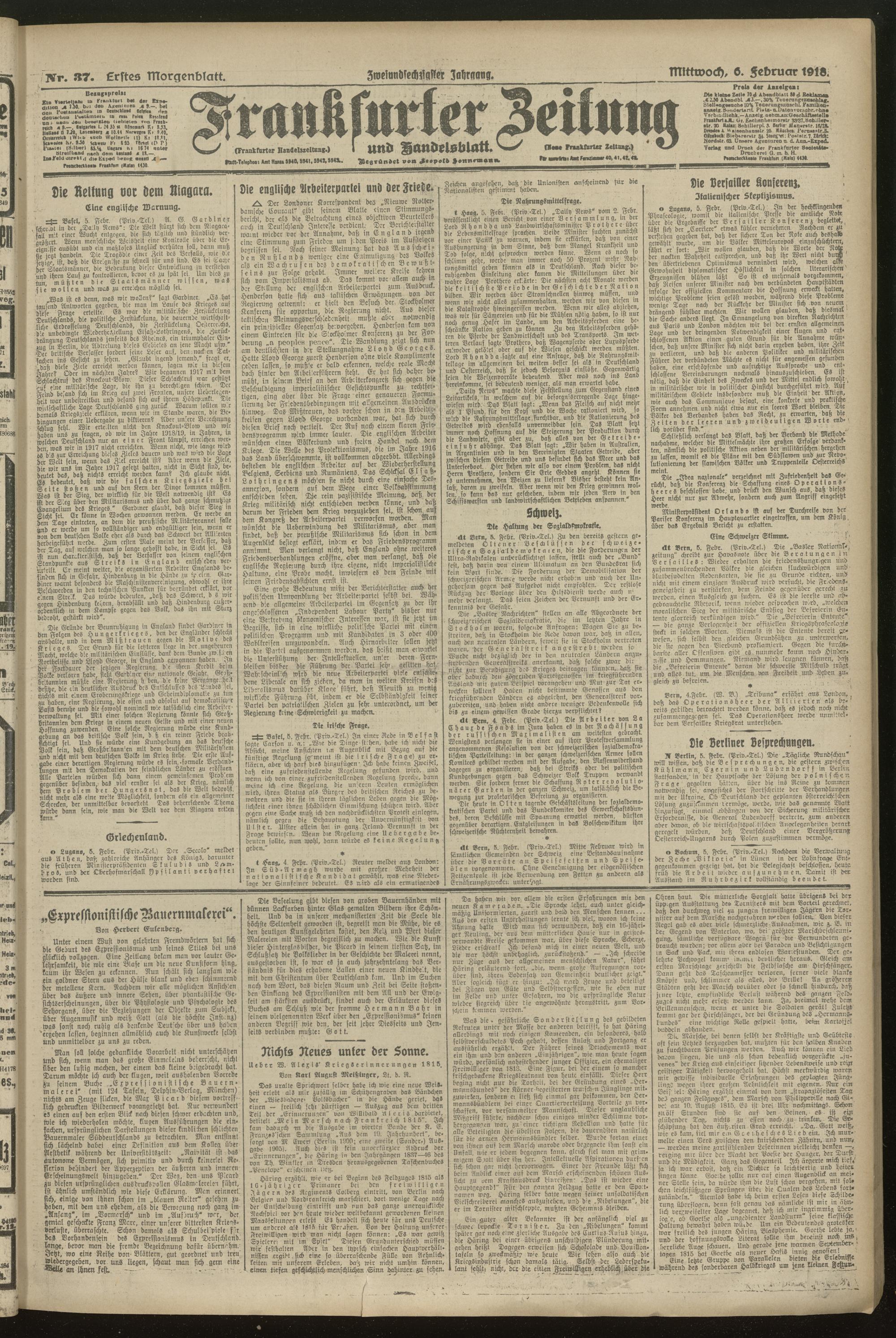 06.02.1918 = Nr. 37. Erstes Morgenblatt