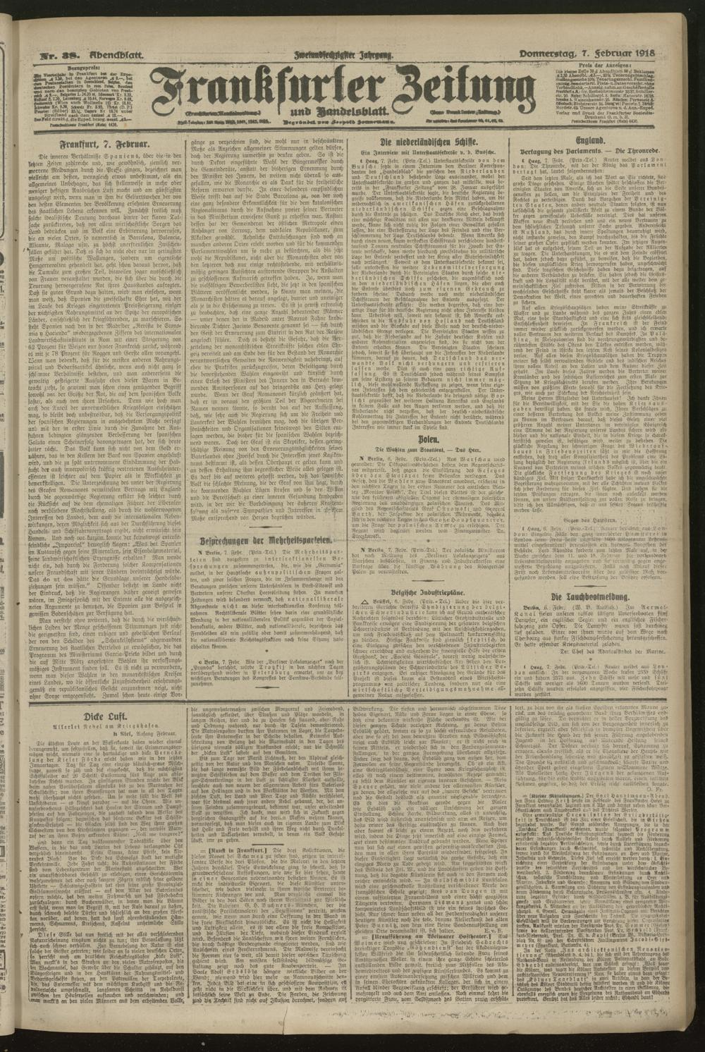 07.02.1918 = Nr. 38. Abendblatt