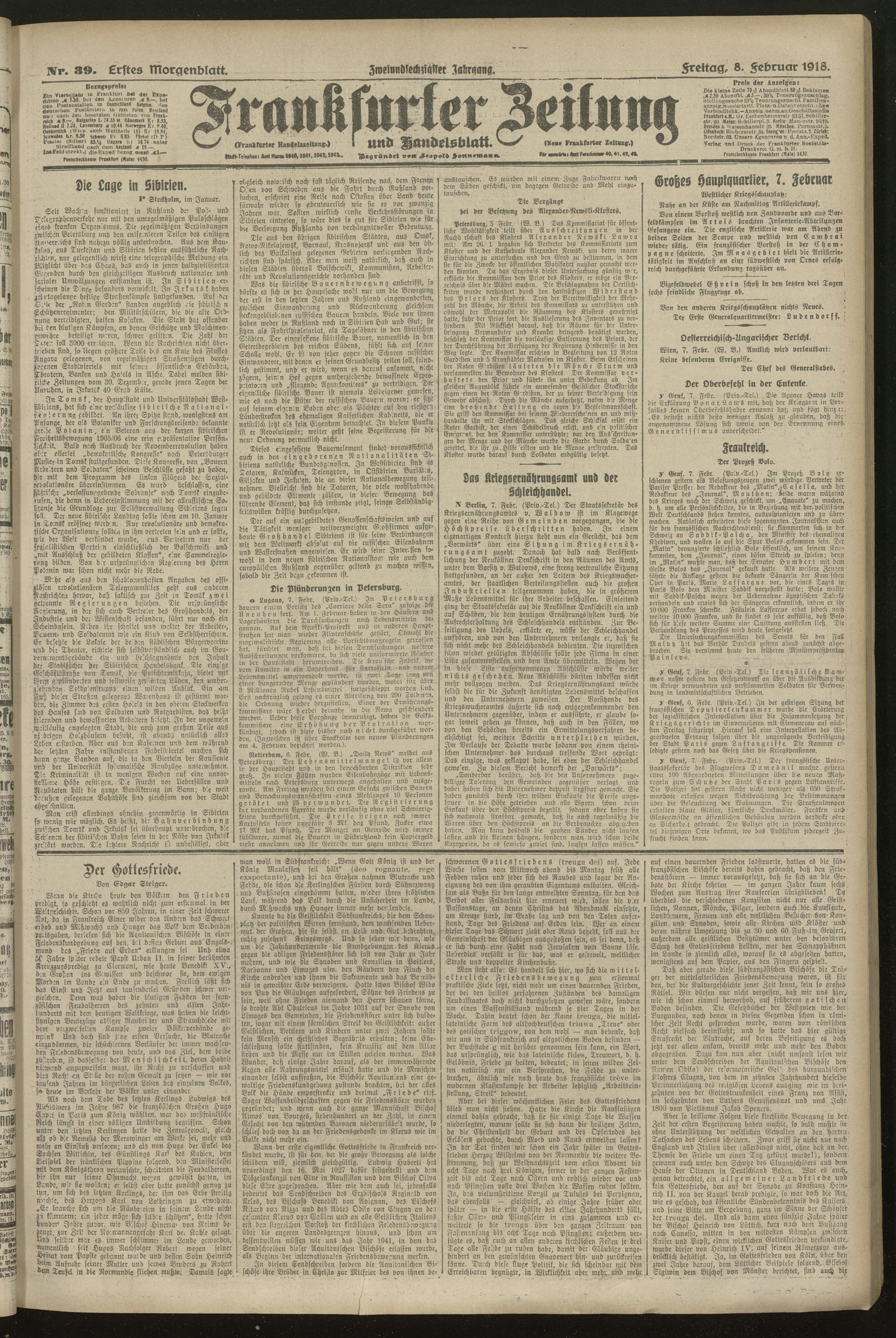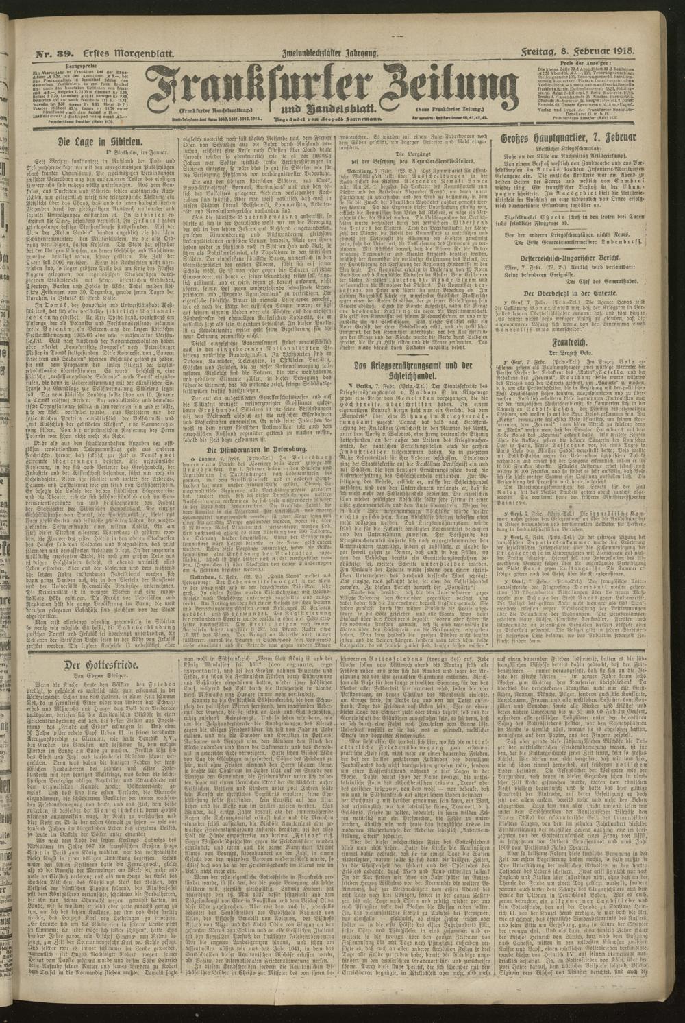 08.02.1918 = Nr. 39. Erstes Morgenblatt