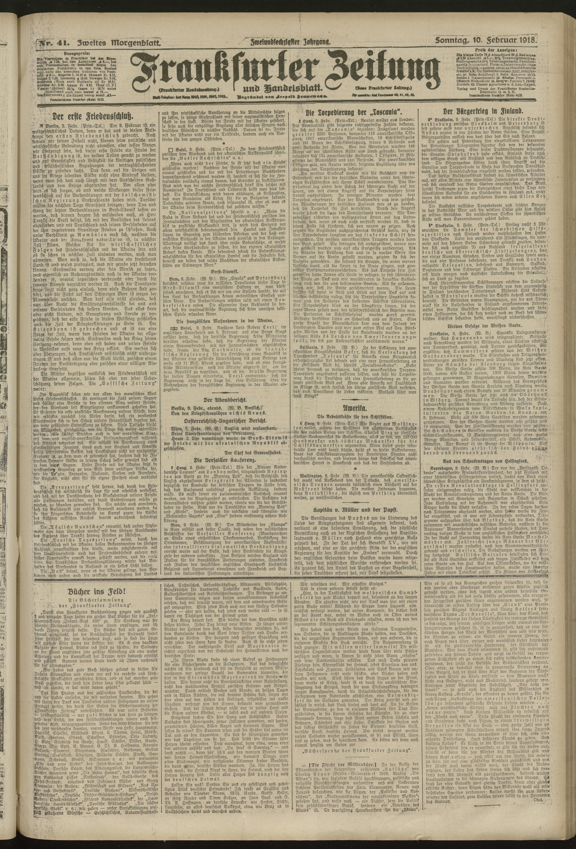 10.02.1918 = Nr. 41. Zweites Morgenblatt