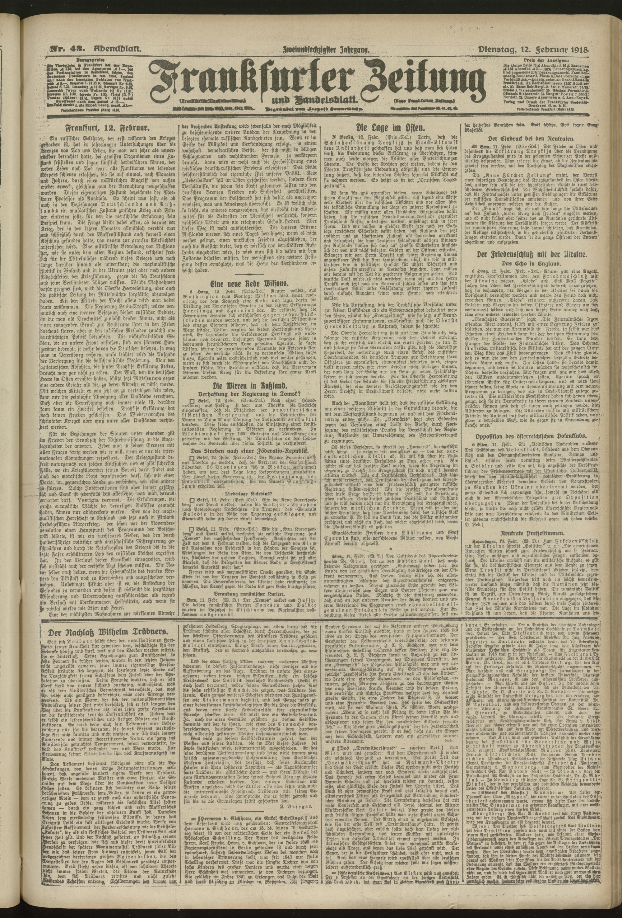12.02.1918 = Nr. 43. Abendblatt