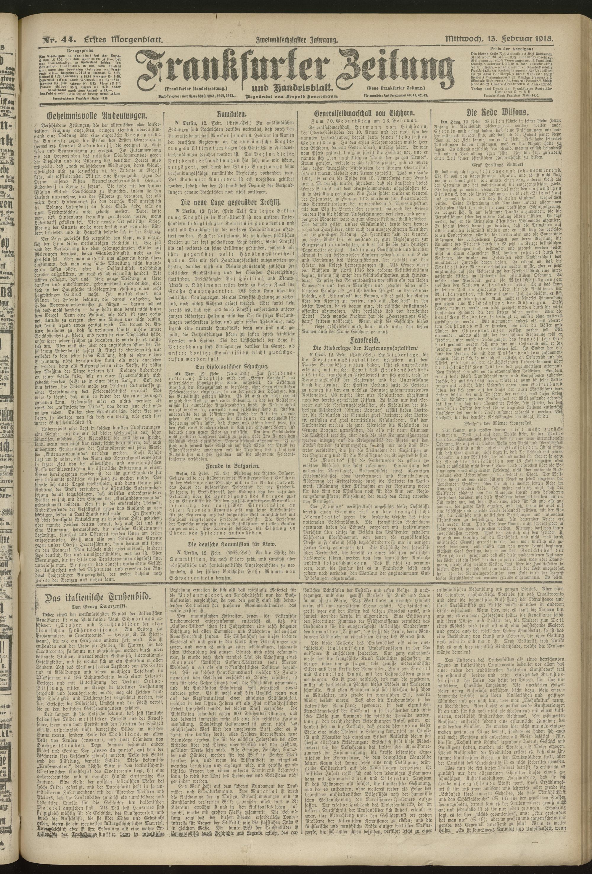 13.02.1918 = Nr. 44. Erstes Morgenblatt