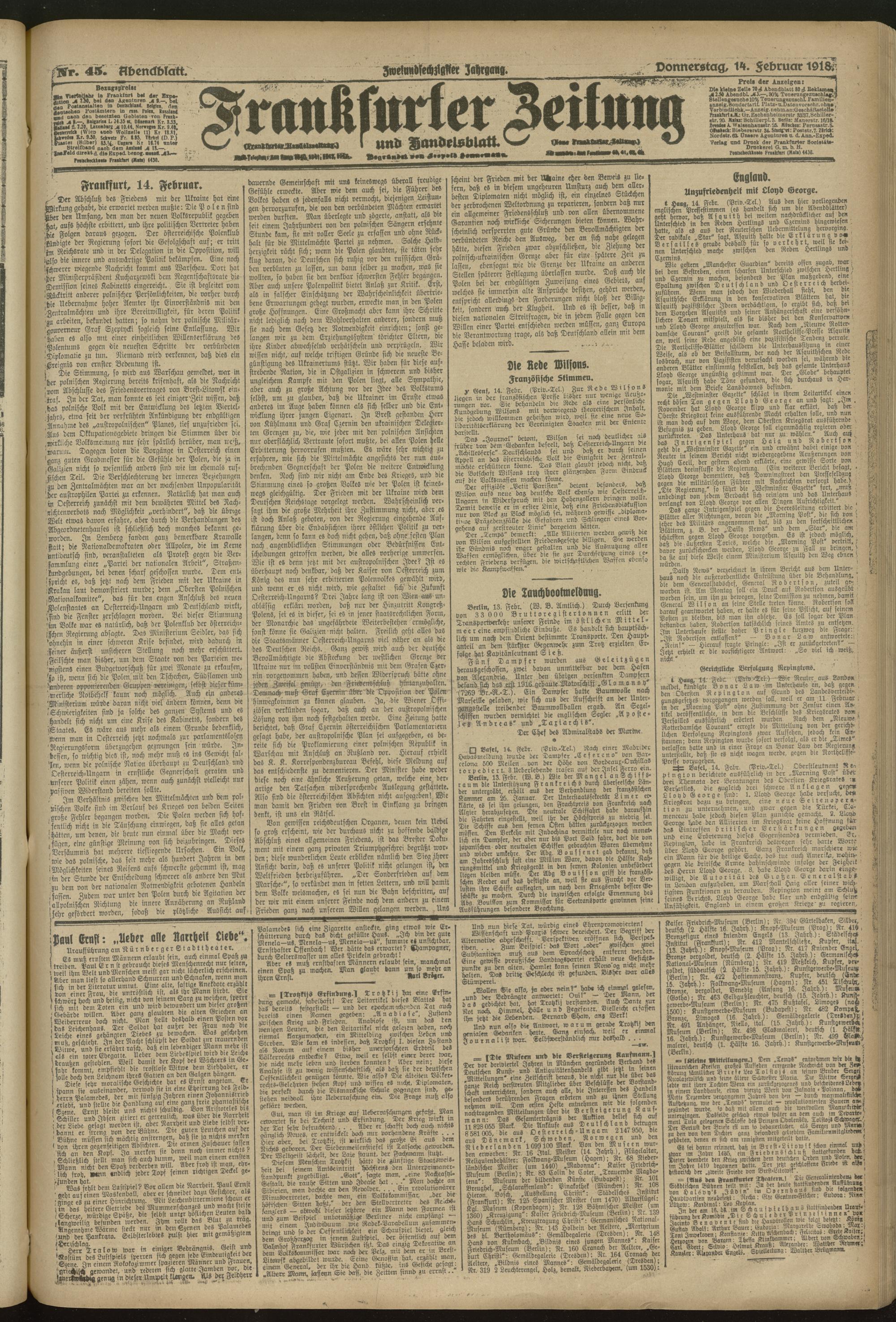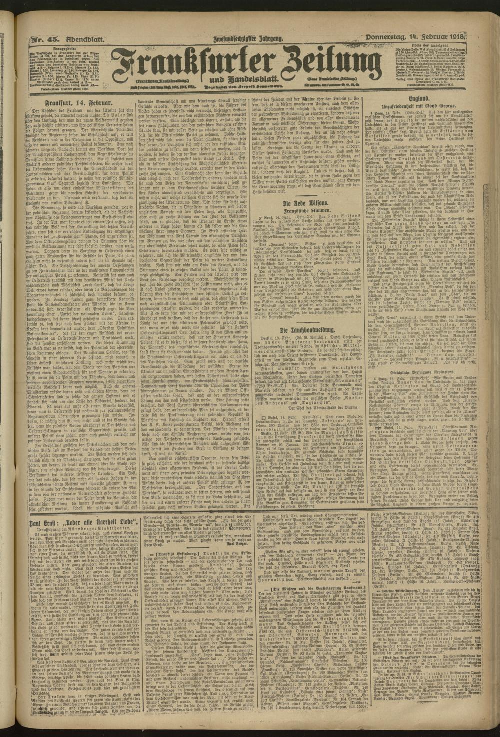 14.02.1918 = Nr. 45. Abendblatt