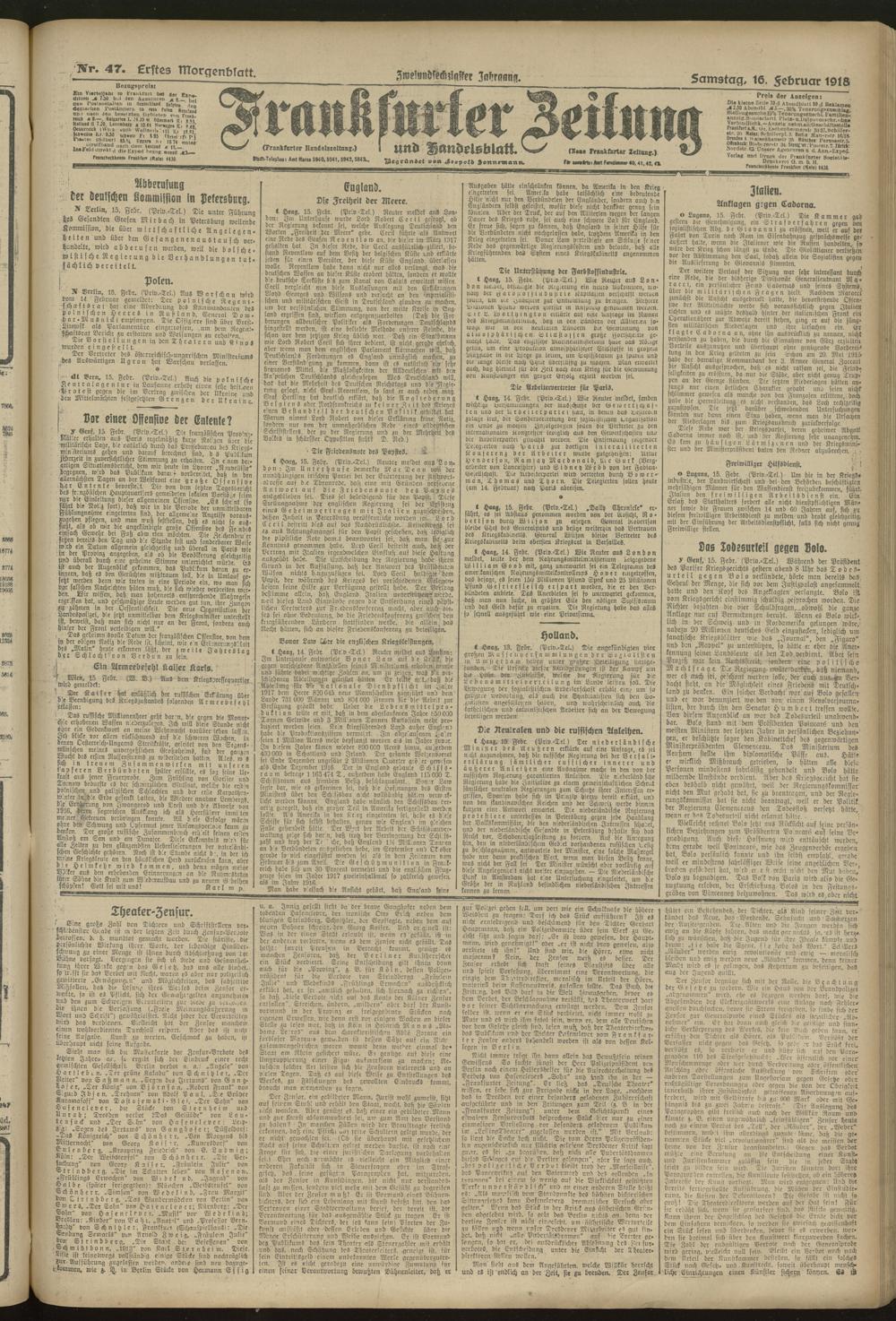 16.02.1918 = Nr. 47. Erstes Morgenblatt