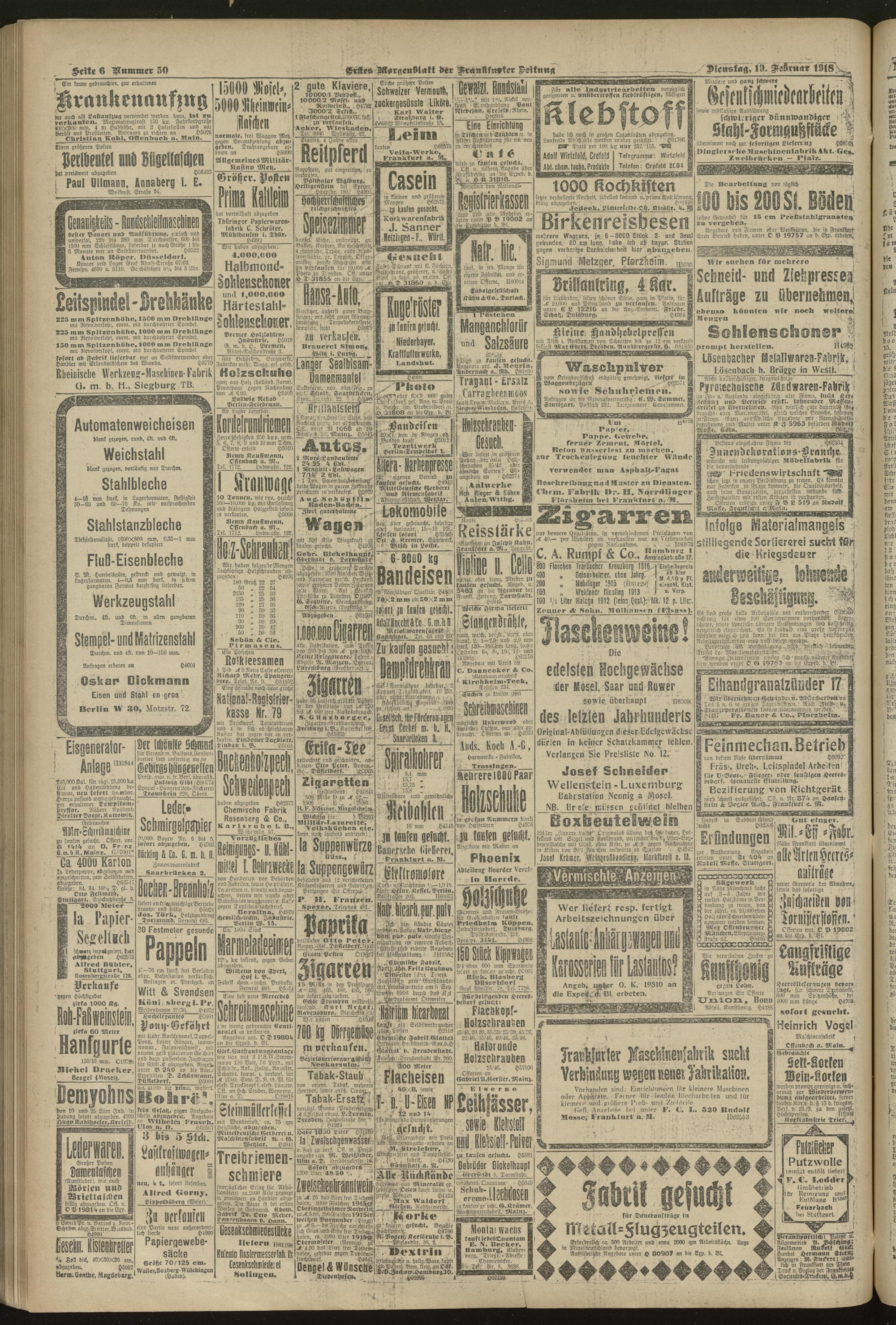 19.02.1918 = Nr. 50. Erstes Morgenblatt