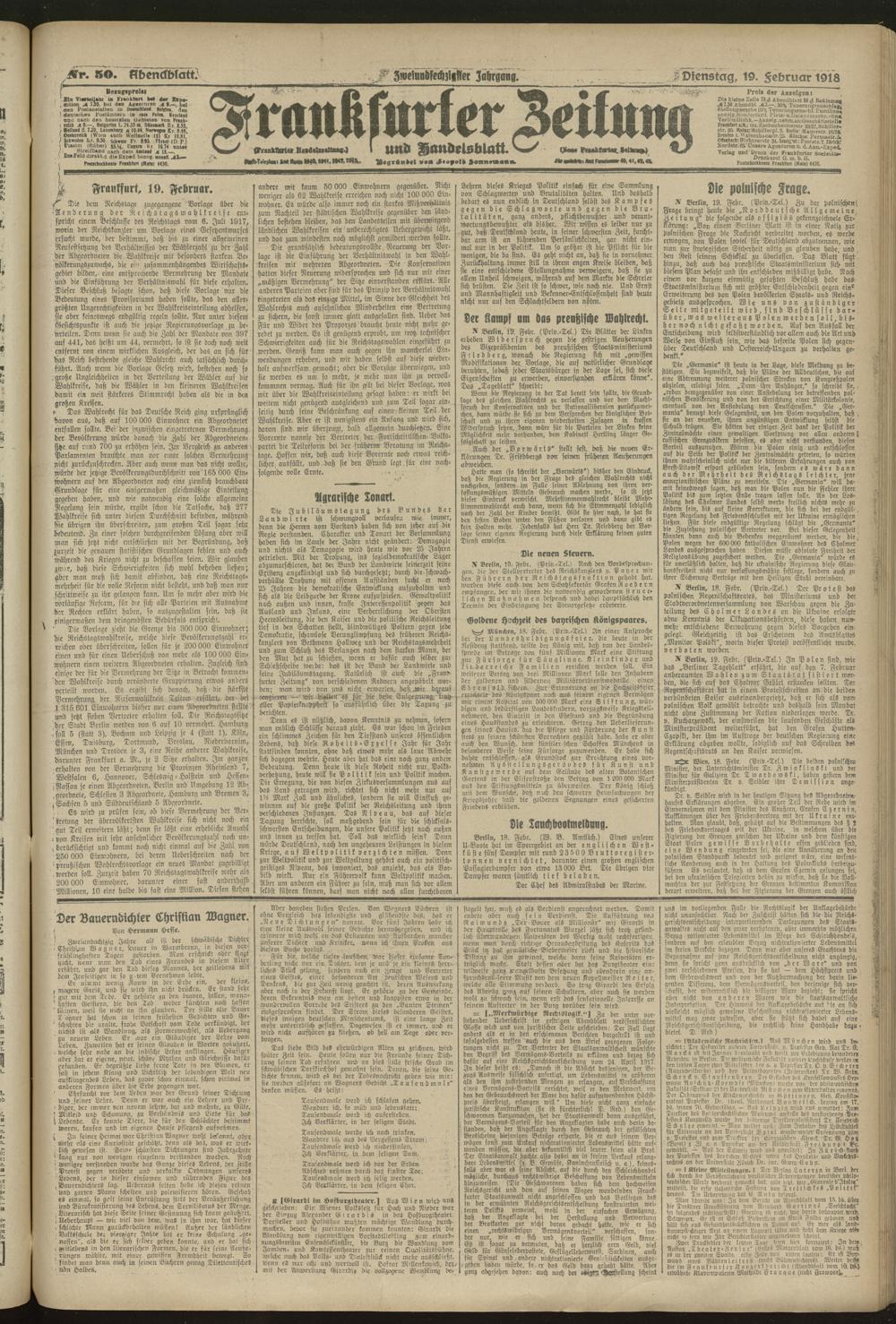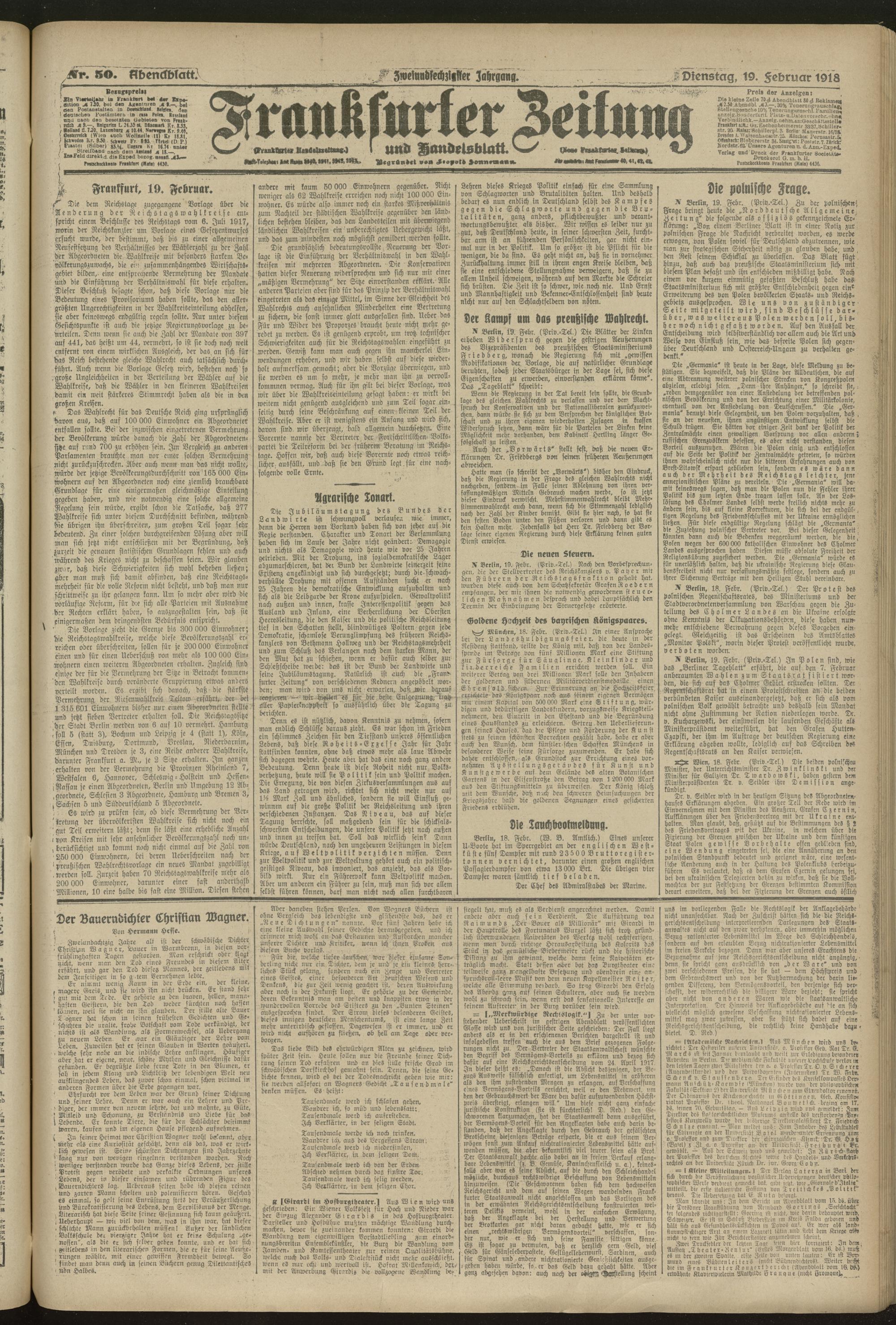 19.02.1918 = Nr. 50. Abendblatt