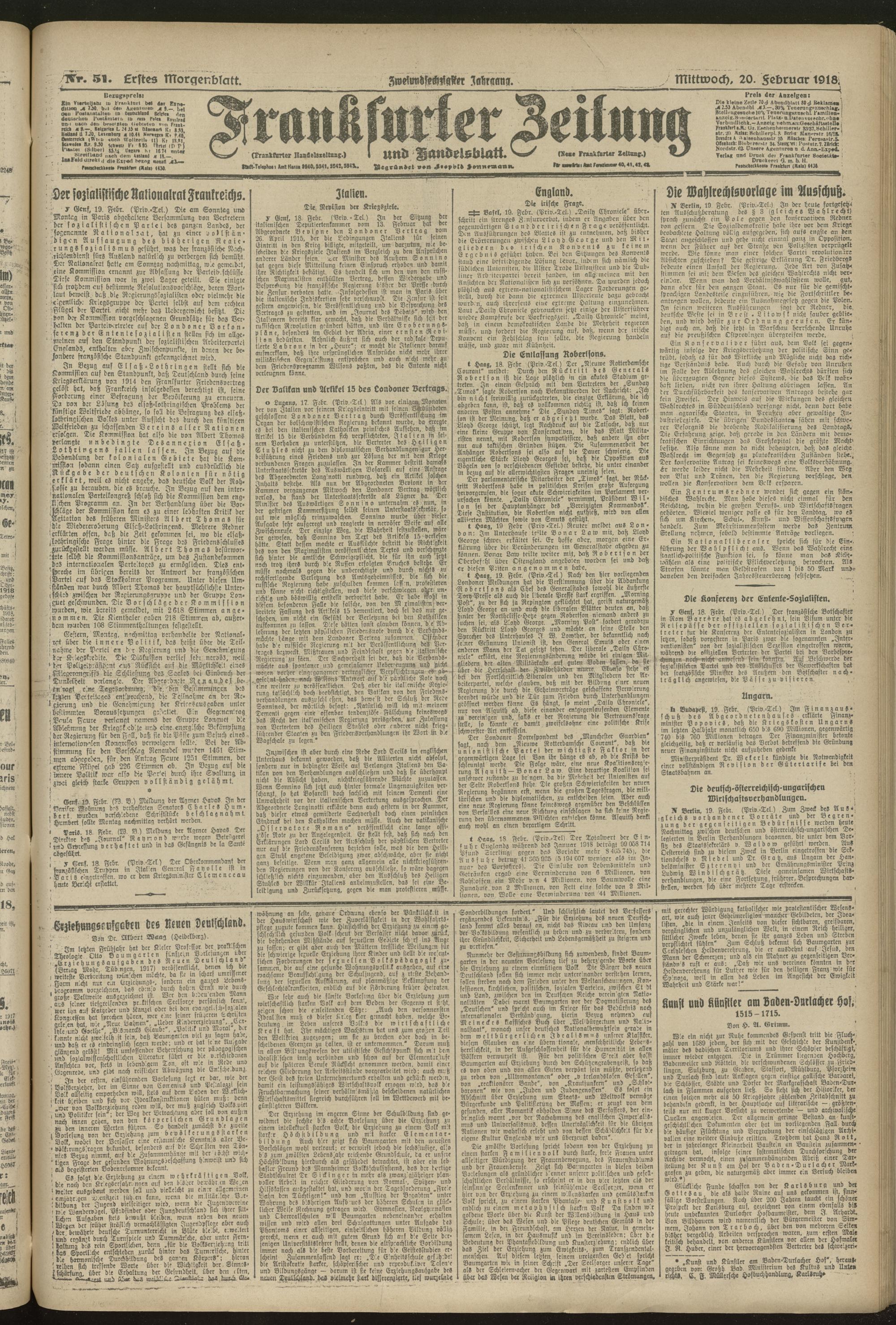 20.02.1918 = Nr. 51. Erstes Morgenblatt