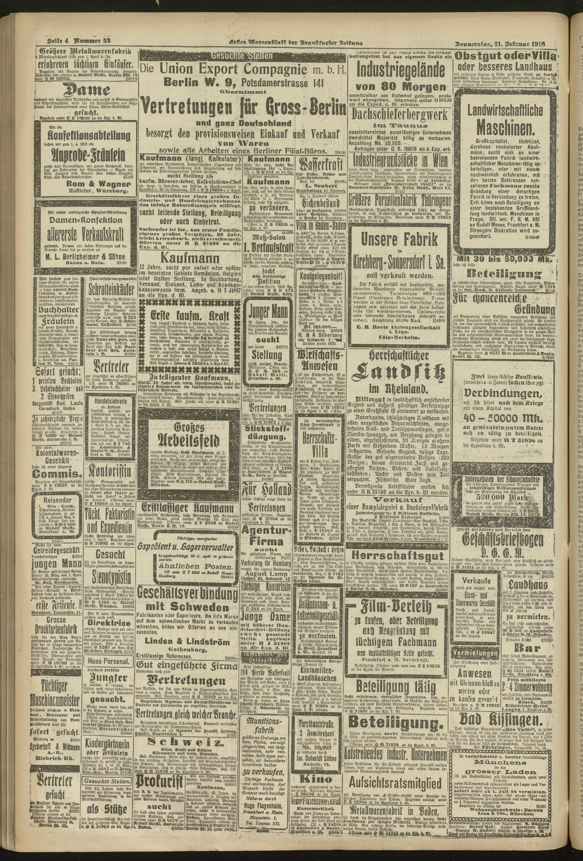21.02.1918 = Nr. 52. Erstes Morgenblatt