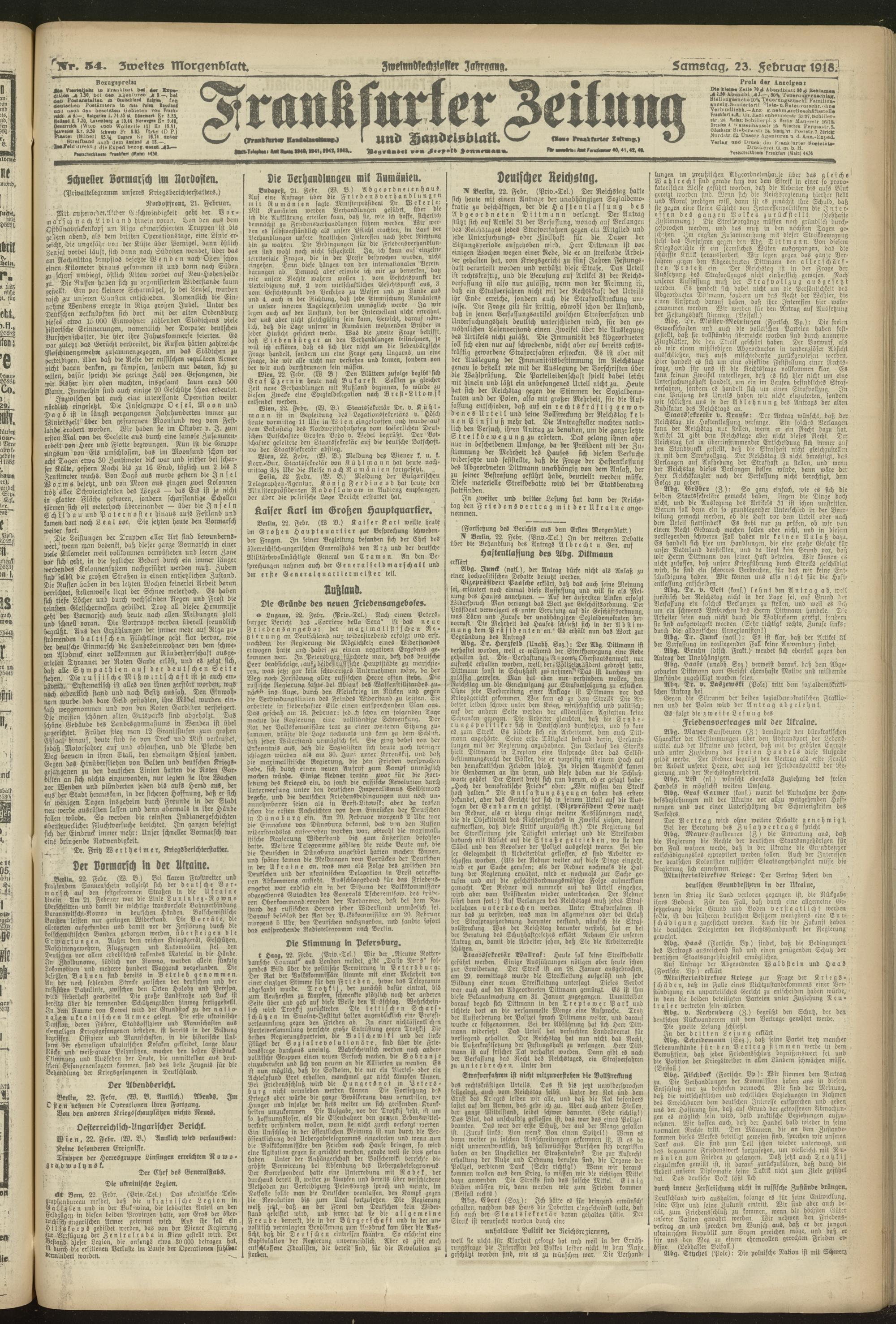 23.02.1918 = Nr. 54. Zweites Morgenblatt