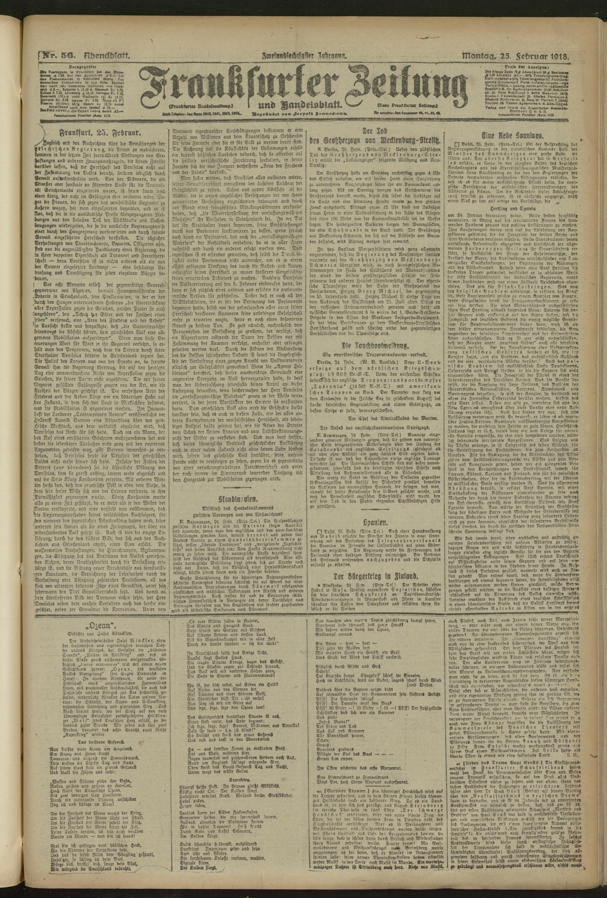 25.02.1918 = Nr. 56. Abendblatt