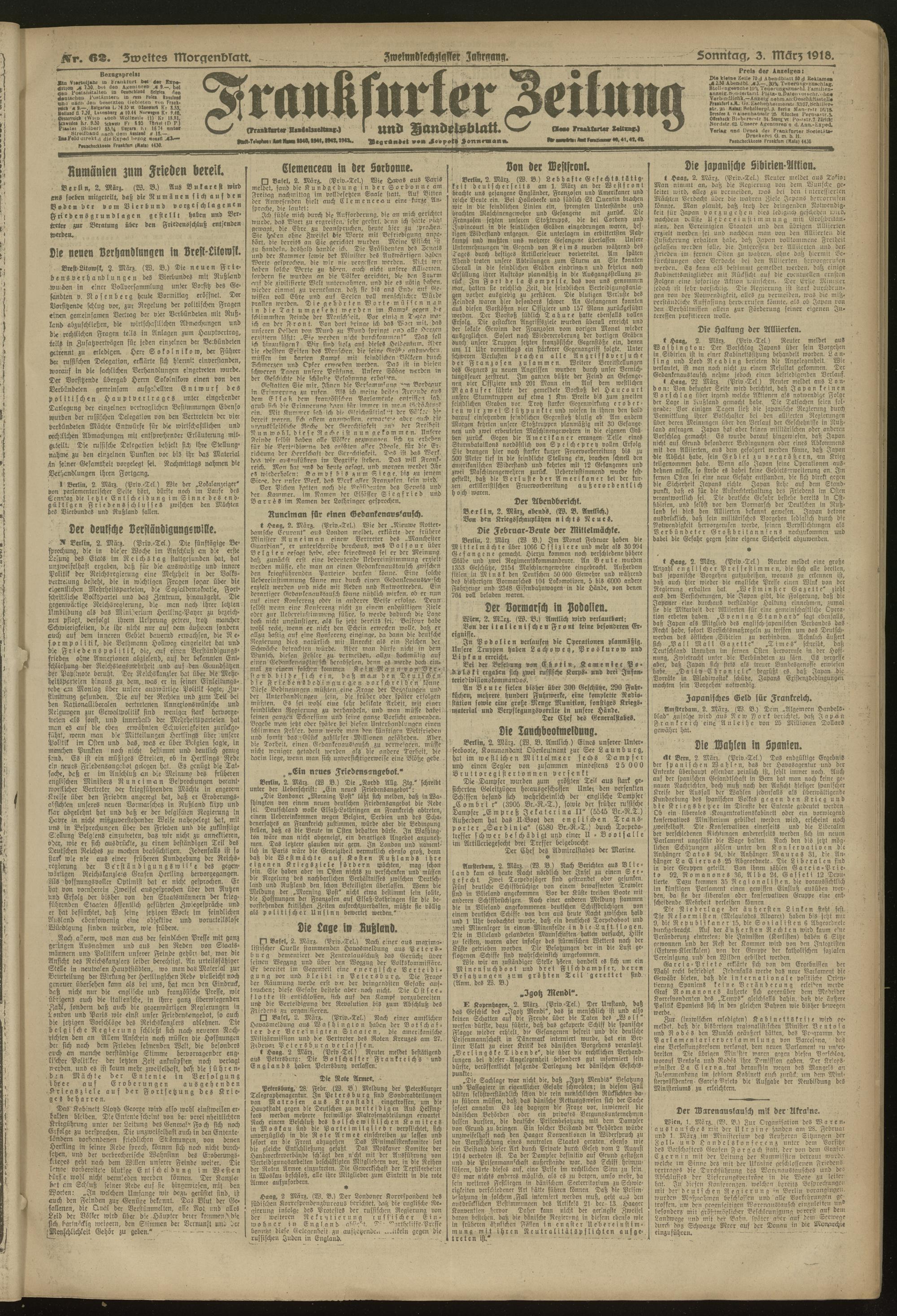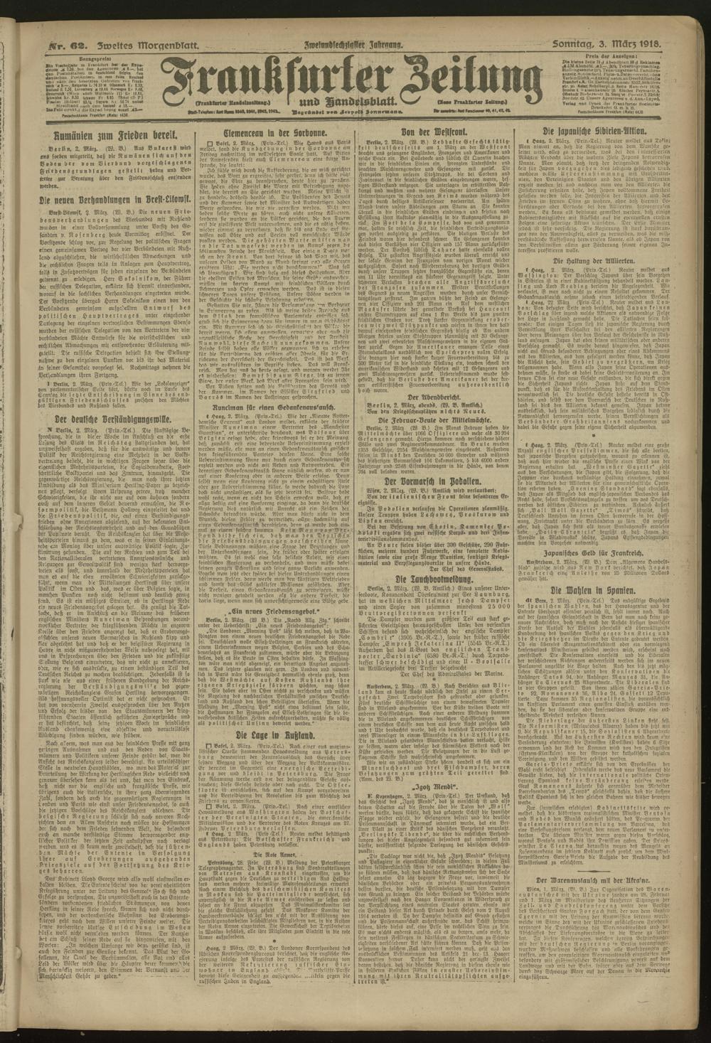 03.03.1918 = Nr. 62. Zweites Morgenblatt