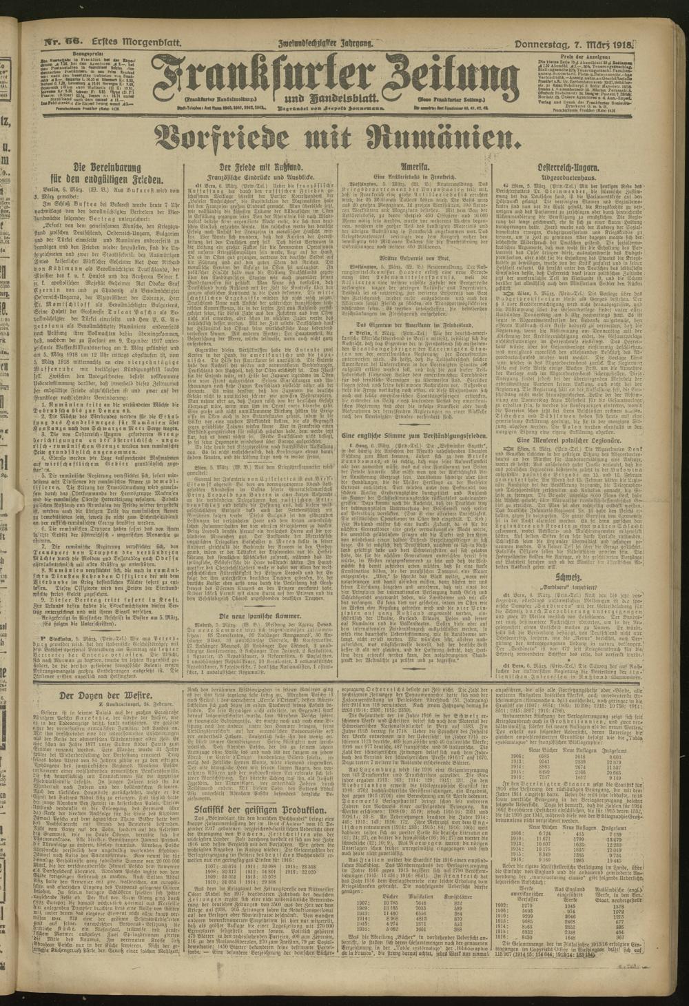 07.03.1918 = Nr. 66. Erstes Morgenblatt