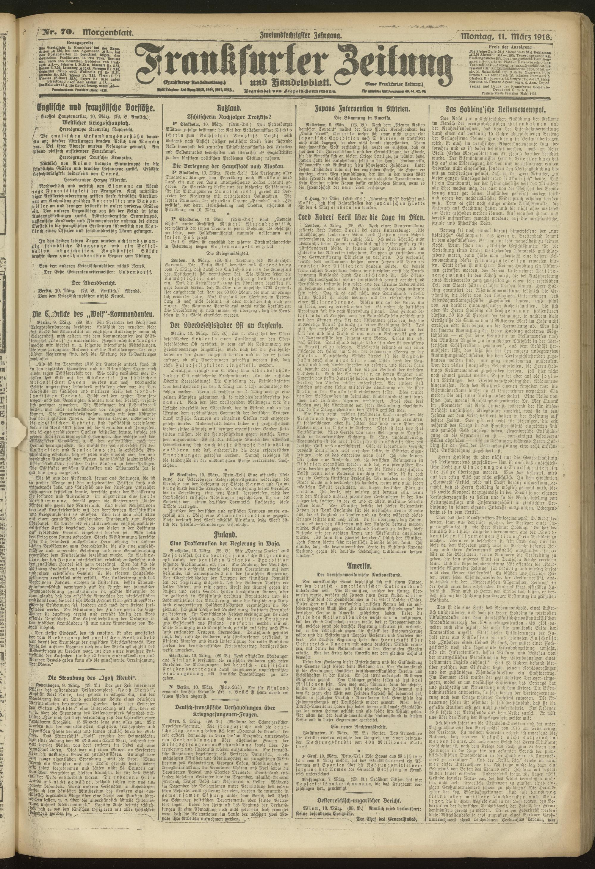 11.03.1918 = Nr. 70. Morgenblatt