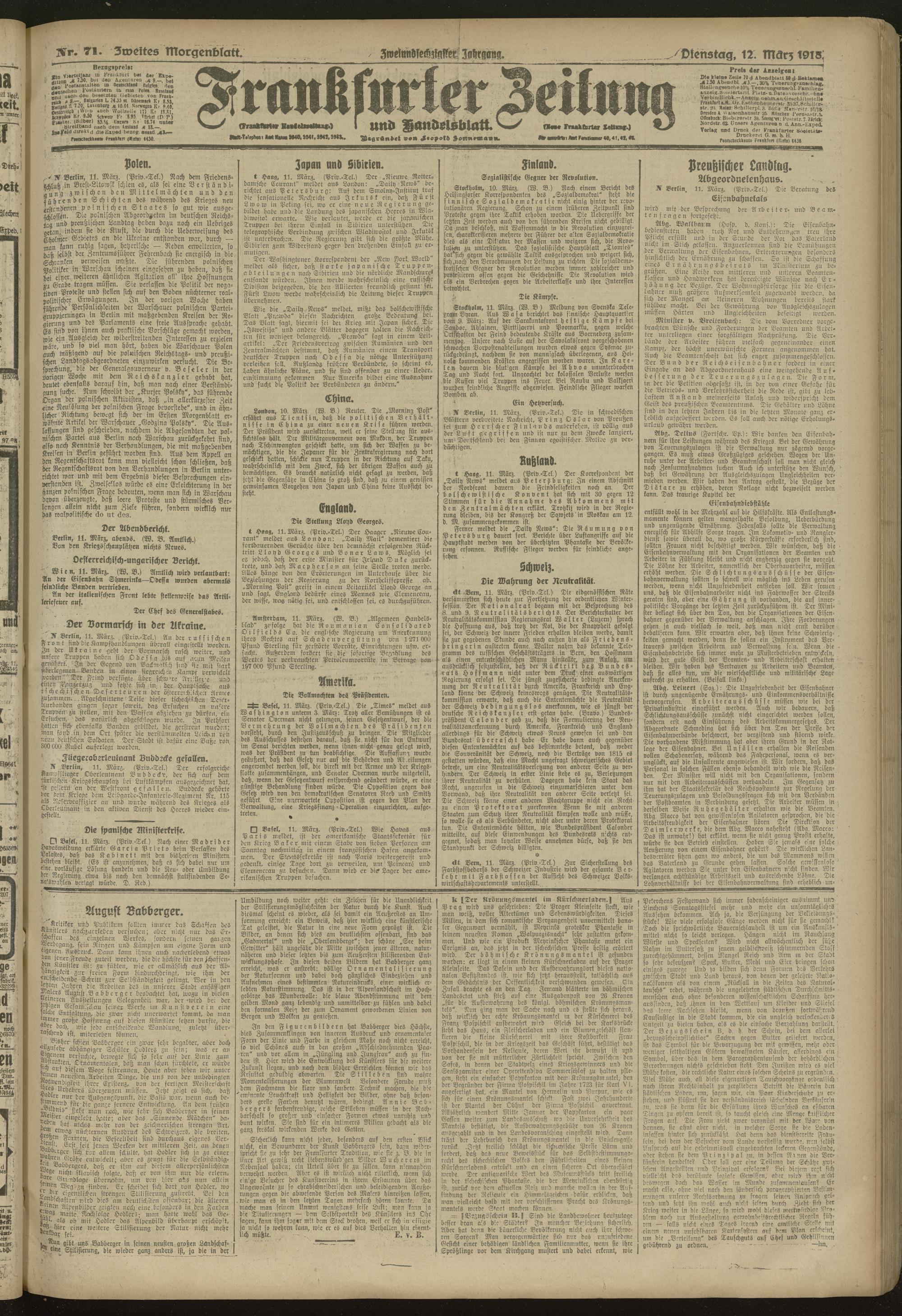 12.03.1918 = Nr. 71. Zweites Morgenblatt