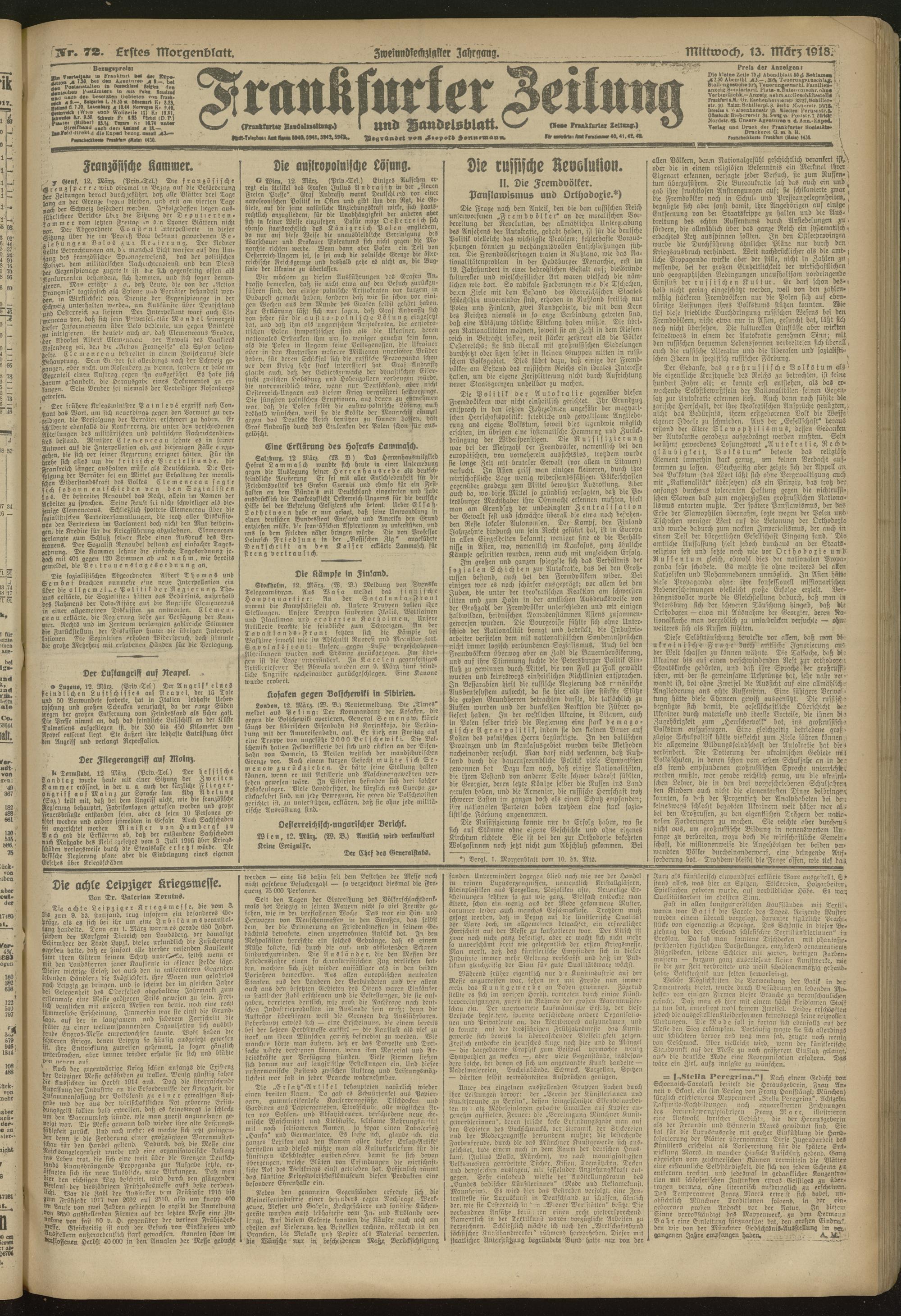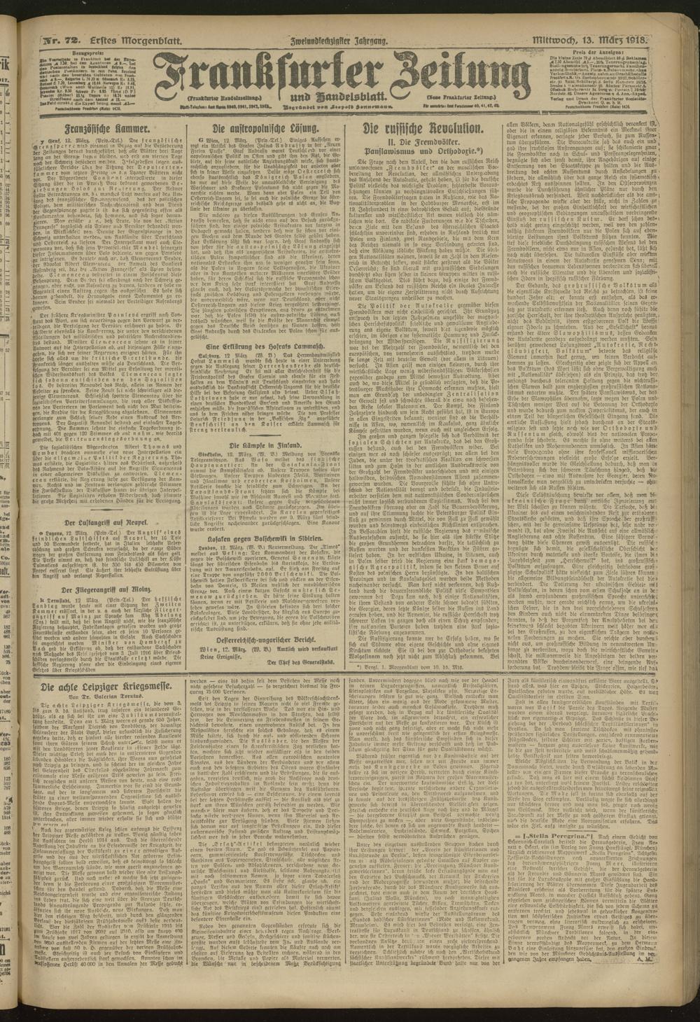 13.03.1918 = Nr. 72. Erstes Morgenblatt