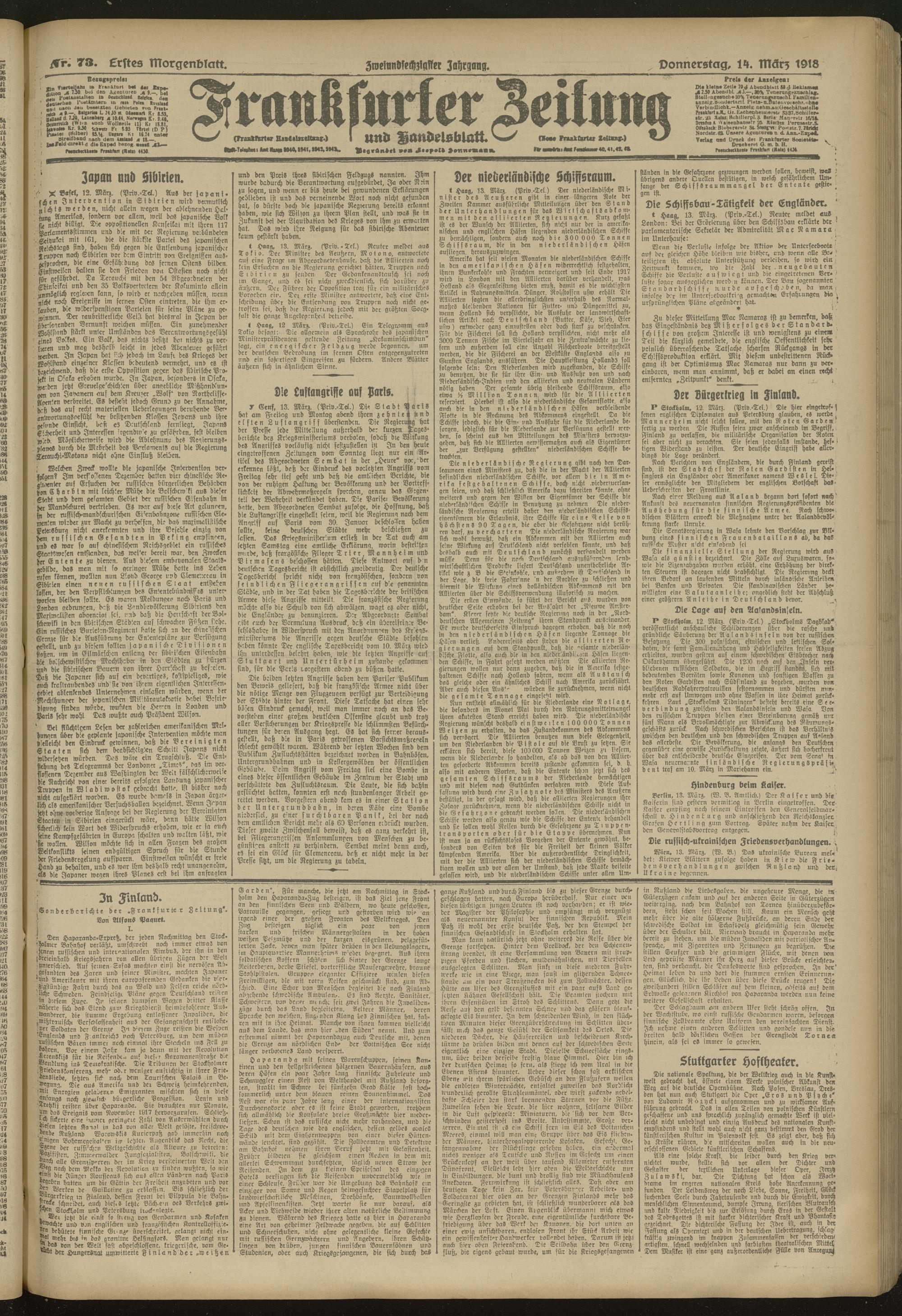 14.03.1918 = Nr. 73. Erstes Morgenblatt