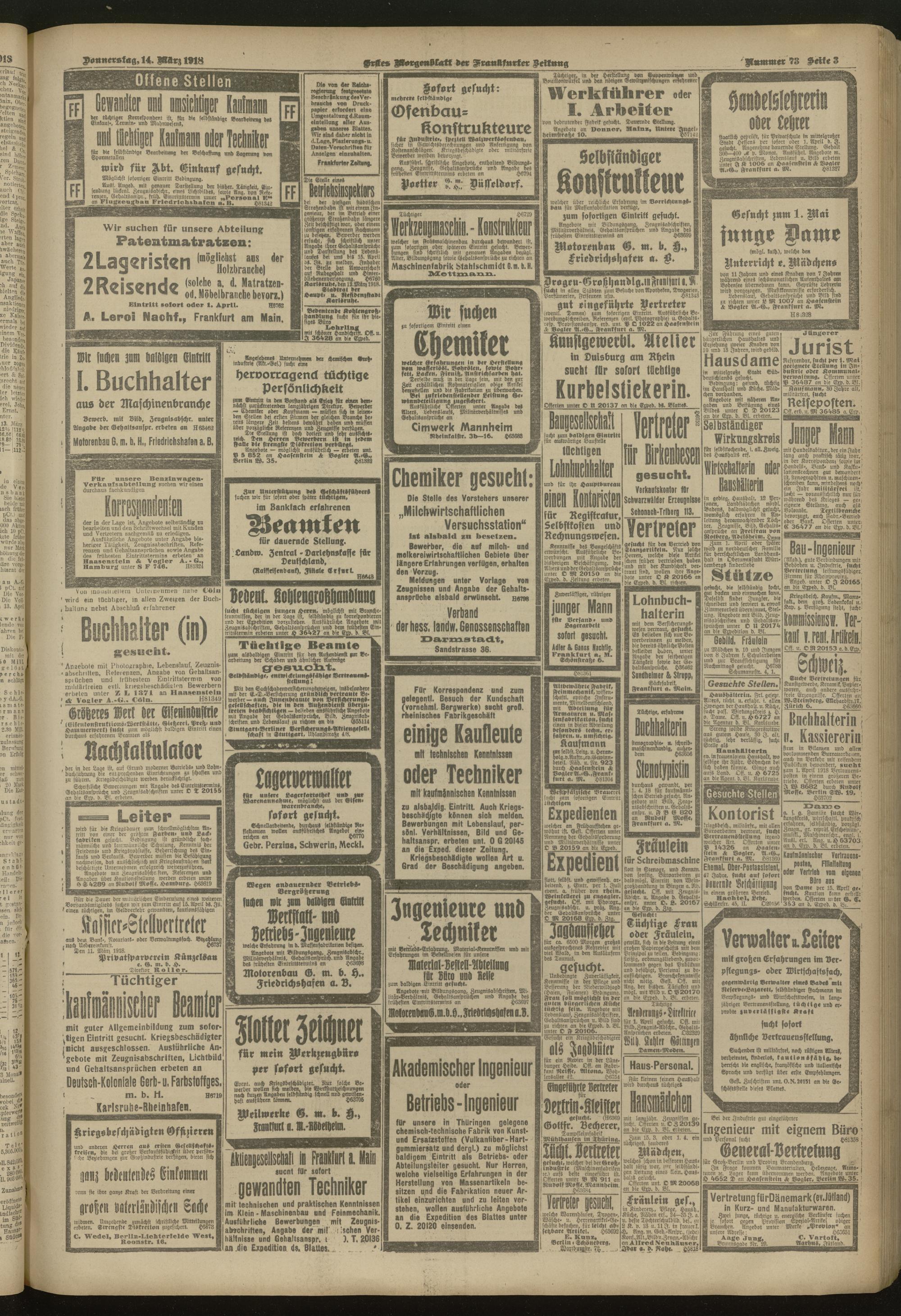 14.03.1918 = Nr. 73. Erstes Morgenblatt