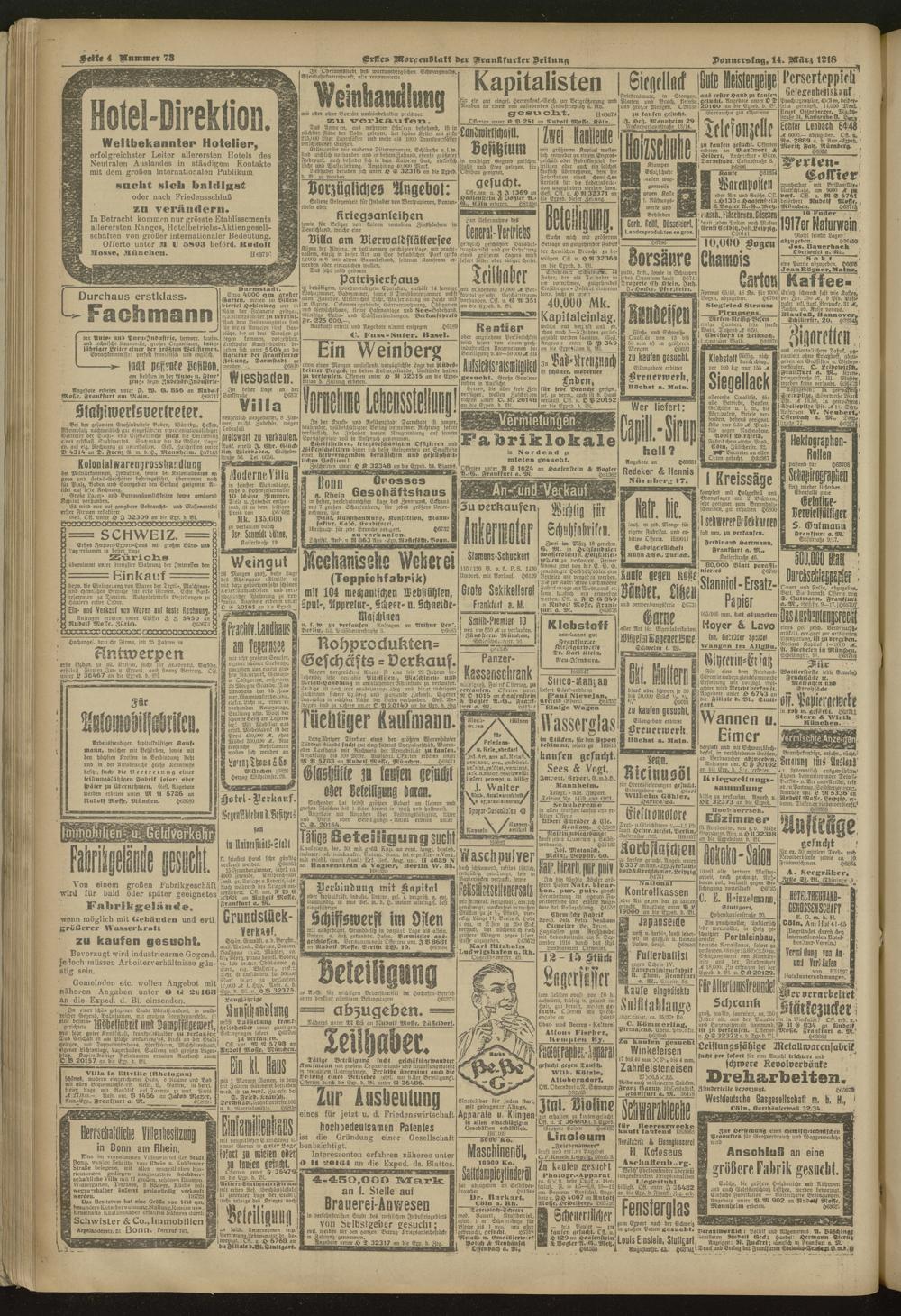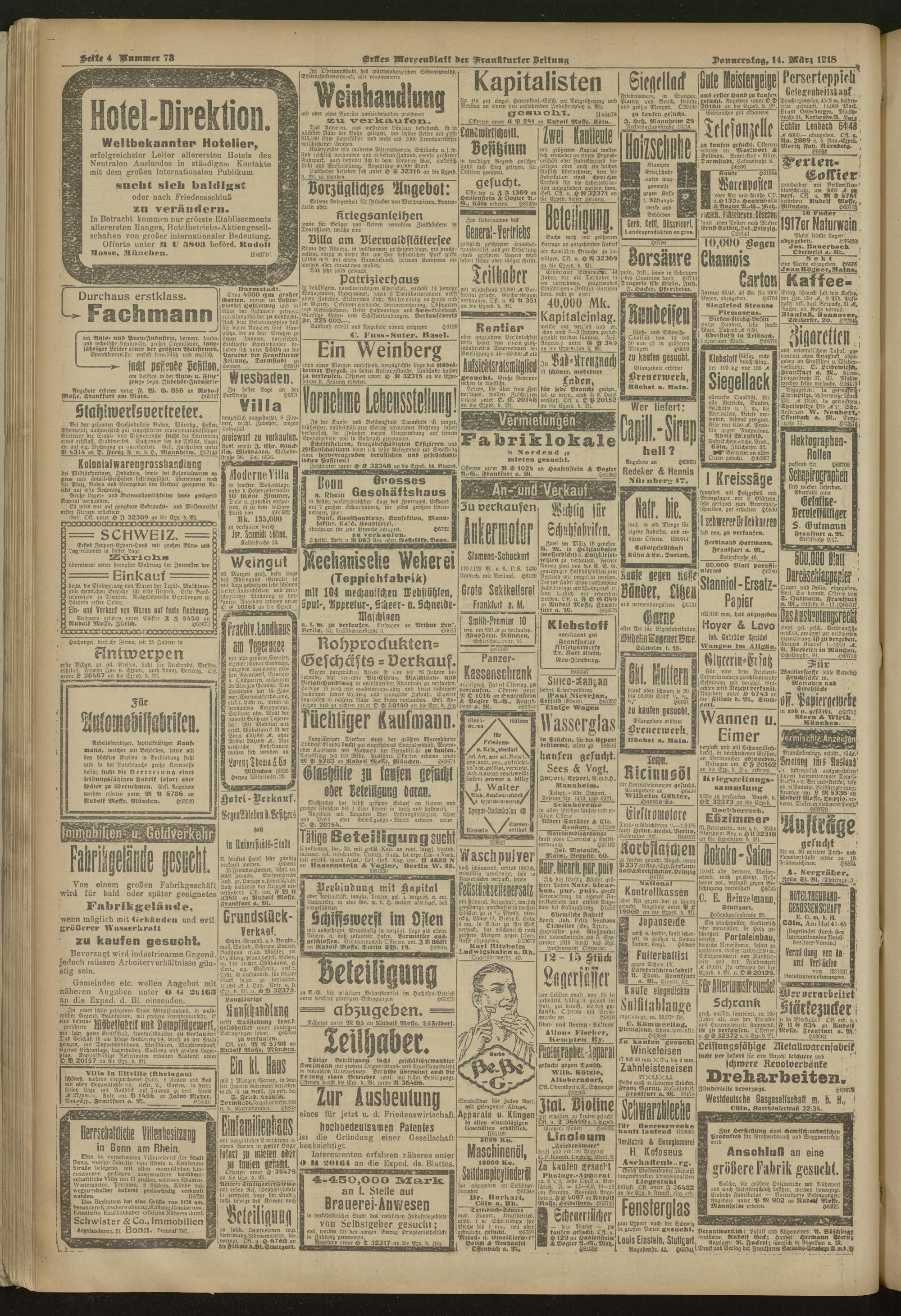 14.03.1918 = Nr. 73. Erstes Morgenblatt