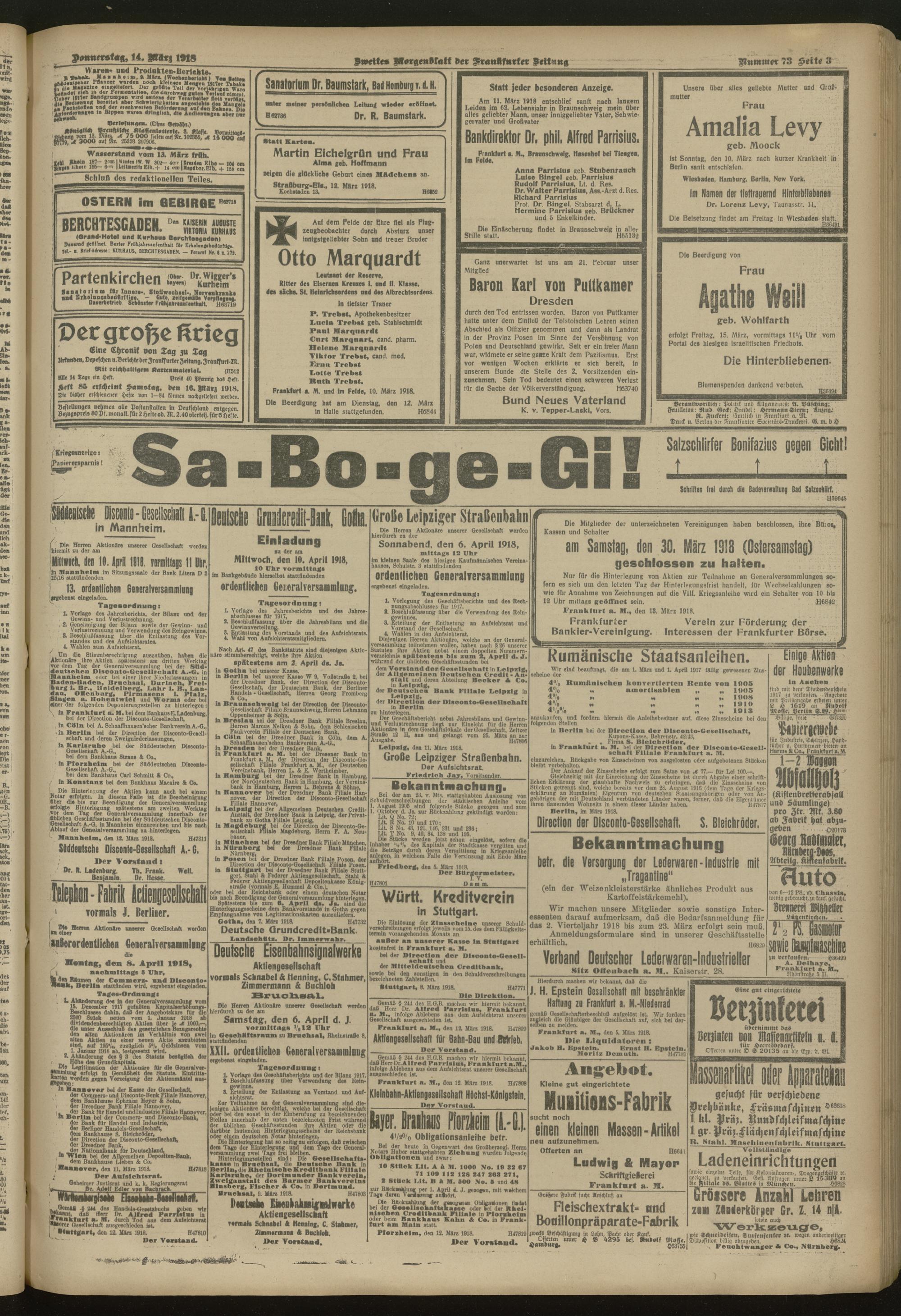14.03.1918 = Nr. 73. Zweites Morgenblatt