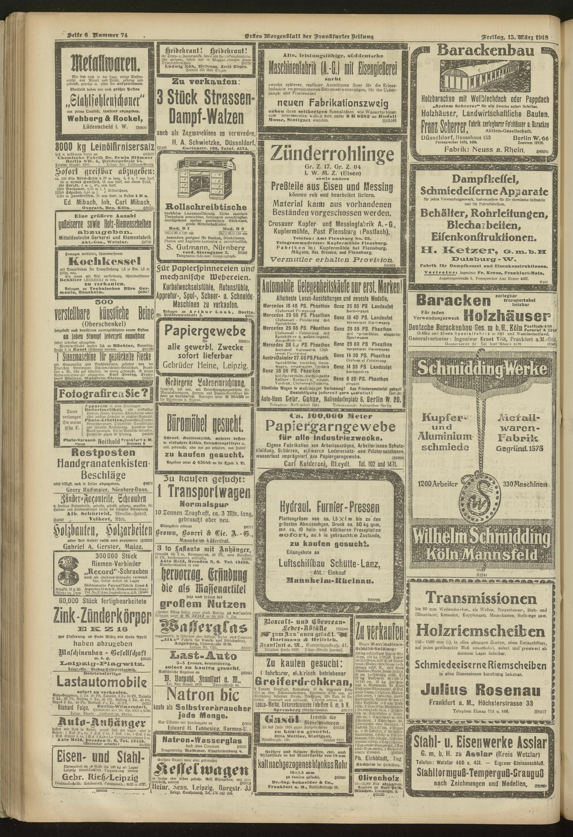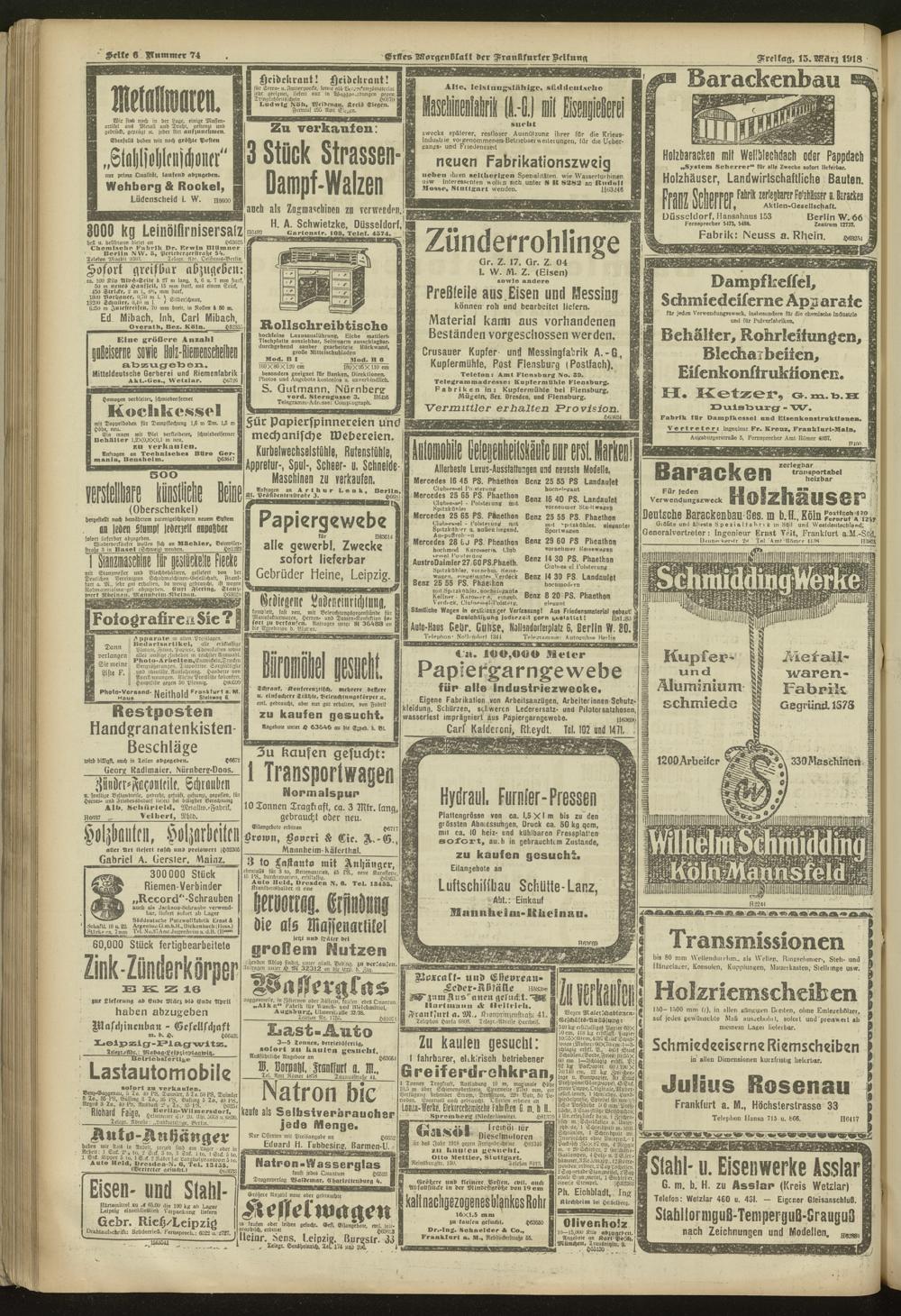 15.03.1918 = Nr. 74. Erstes Morgenblatt